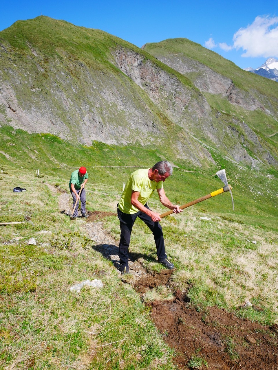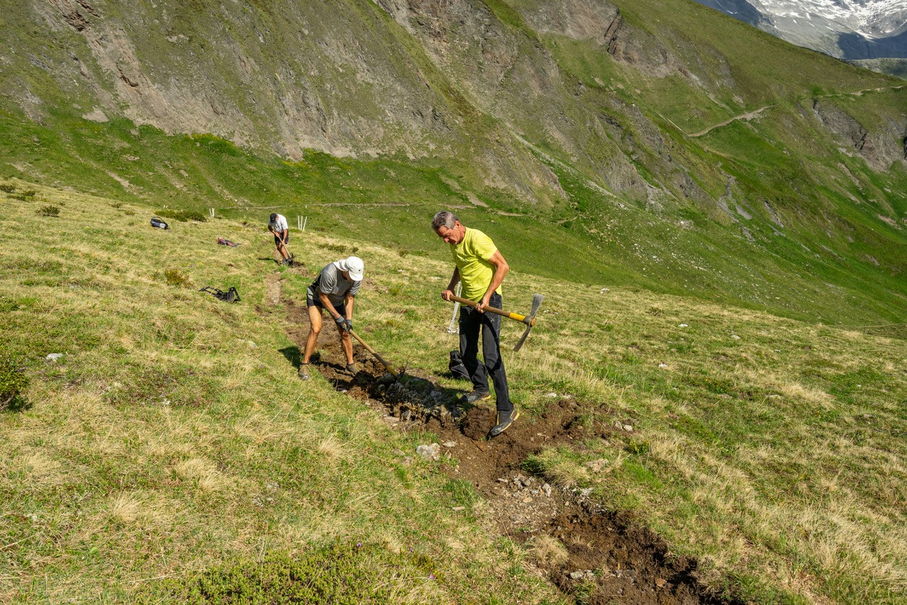 Der Weg zur Tiefrastenhütte wurde bei einem der letzten Gewitter auf einigen Abschnitten vermurt. In Terenten packte daher ein Trupp kräftiger junger Männer mit an, um den Weg wieder begehbar zu machen.