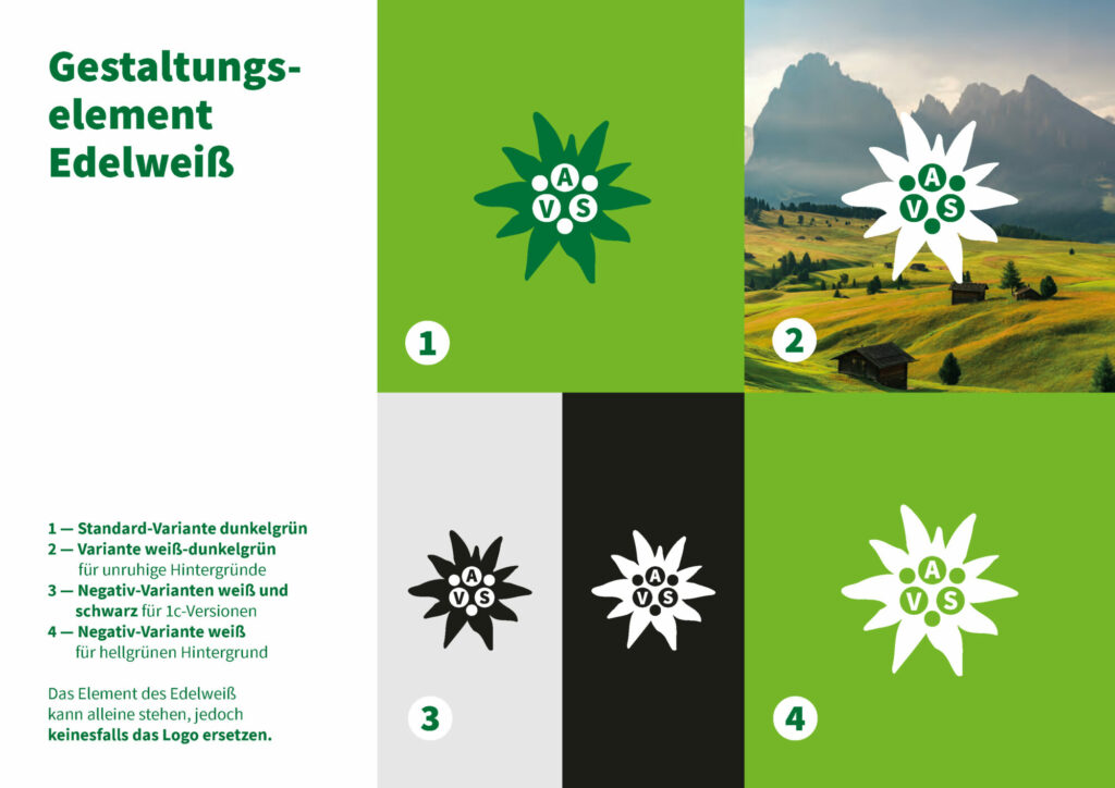 - AVS: ist die Kurzfassung für Alpenverein Südtirol. Der unverkennbare Schriftzug sorgt für den größten Wiedererkennungswert im Logo
