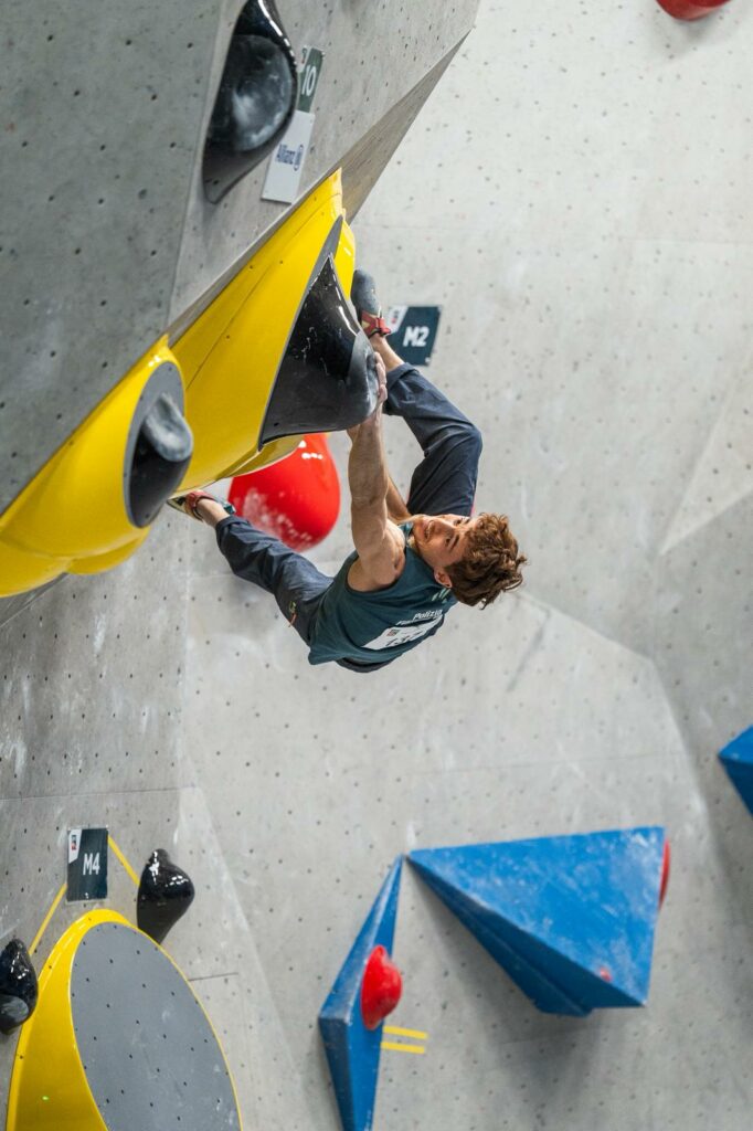 Die Italienmeisterschaft wurde vom Gesamtstaatlichen Kletterverband FASI organisiert und vom AVS unterstützt. Am Samstag fanden die Qualifikationen statt – schon hier zeigten die Südtiroler Athlet:innen, was sie draufhaben. Etwa 500 Zuschauer fieberten mit, als sich Leonie Hofer, Matilda Liù Moar, Emma Benazzi und Filip Schenk am Samstag für das Halbfinale qualifizierten. Für Bettina Dorfmann, Johannes Egger und Piergiulio Paglierani war die Italienmeisterschaft am Samstag zu Ende. Sehr spannend war der Wettkampftag bei den Männern: Filip Schenk hatte eine hohe Startnummer – die 137. In den letzten Jahren hatte er sich vor allem auf die Disziplin Lead konzentriert; bei der Qualifikation rollte er beim Boulder das Feld von hinten her auf und zeigte eine starke Leistung. Er landete in der Qualifikation auf Platz 7 – vor dem amtierenden Italienmeister Nicoló Sartirana.