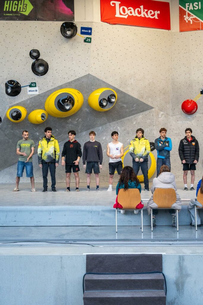 Die Boulderprobleme waren technisch anspruchsvoll und kreativ geschraubt – Chef-Routenbauer war Stefan Scarperi. In der Qualifikation waren 5 Boulder in vier Minuten zu klettern, im Halbfinale und Finale jeweils 4. Aus allen Regionen Italiens waren die stärksten Athleten angetreten; die amtierenden Italienmeister Giorgia Tesio und Nicolò Sartirana waren auch dabei – wobei sich Nicolò Sartirana als 9. knapp nicht für das Finale qualifizeren konnte. Aus Südtirol waren der amtierende Lead-Italienmeister Filip Schenk, Johannes Egger, Emma Benazzi, Leonie Hofer, Matilda Liù Moar und Bettina Dorfmann am Start – sie haben schon Erfahrungen bei Italienmeisterschaften gesammelt. Zum ersten Mal dabei war Pier Giulio Paglierani.