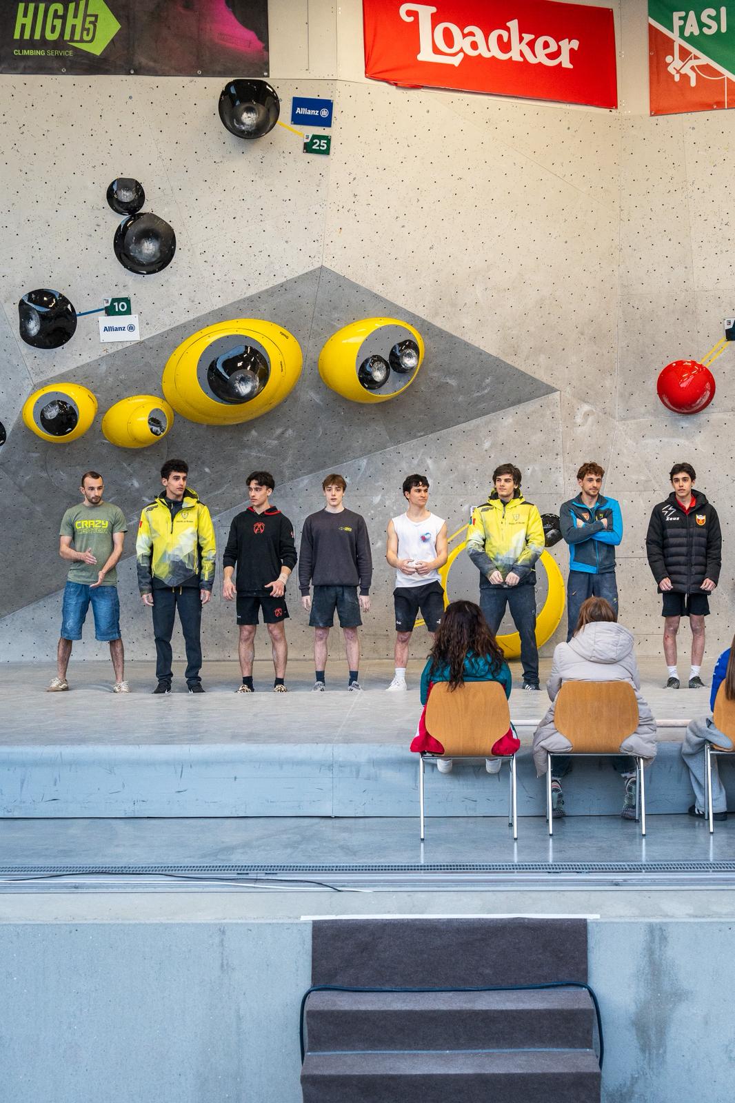 Die Boulderprobleme waren technisch anspruchsvoll und kreativ geschraubt – Chef-Routenbauer war Stefan Scarperi. In der Qualifikation waren 5 Boulder in vier Minuten zu klettern, im Halbfinale und Finale jeweils 4. Aus allen Regionen Italiens waren die stärksten Athleten angetreten; die amtierenden Italienmeister Giorgia Tesio und Nicolò Sartirana waren auch dabei – wobei sich Nicolò Sartirana als 9. knapp nicht für das Finale qualifizeren konnte. Aus Südtirol waren der amtierende Lead-Italienmeister Filip Schenk, Johannes Egger, Emma Benazzi, Leonie Hofer, Matilda Liù Moar und Bettina Dorfmann am Start – sie haben schon Erfahrungen bei Italienmeisterschaften gesammelt. Zum ersten Mal dabei war Pier Giulio Paglierani.