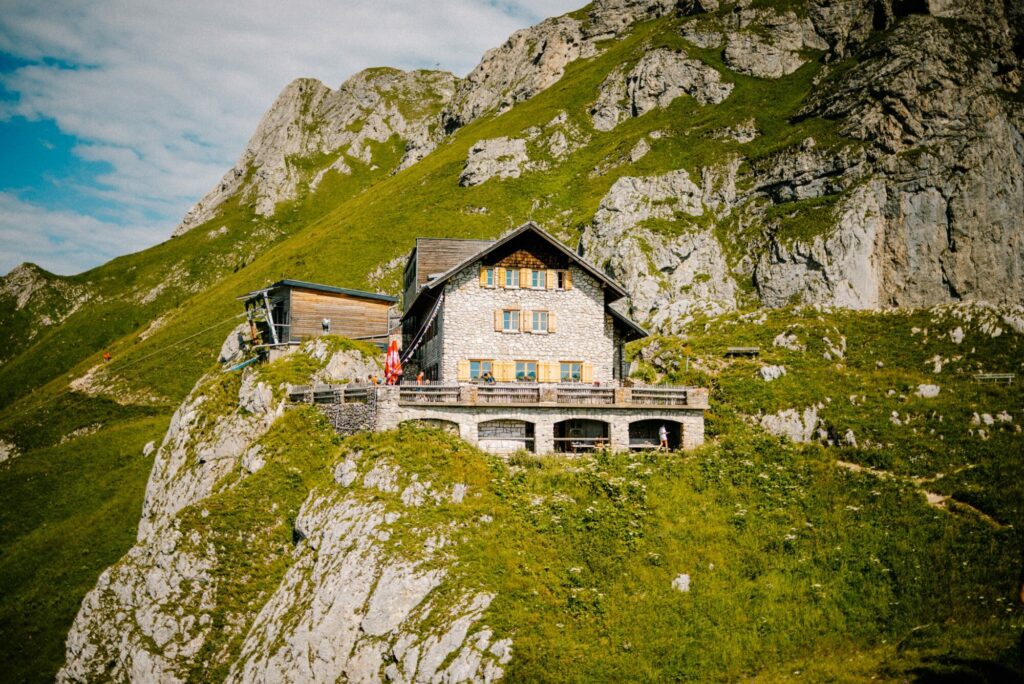 Am Fuß des Aggensteins thront die Bad Kissinger Hütte auf 1.788 m, ihre exponierte Lage erlaubt den Hüttengästen einen faszinierenden Rundumblick sowohl ins Voralpenland aber auch tief in die Allgäuer und angrenzenden Berge. Sie ist noch den ganzen Oktober geöffnet.
