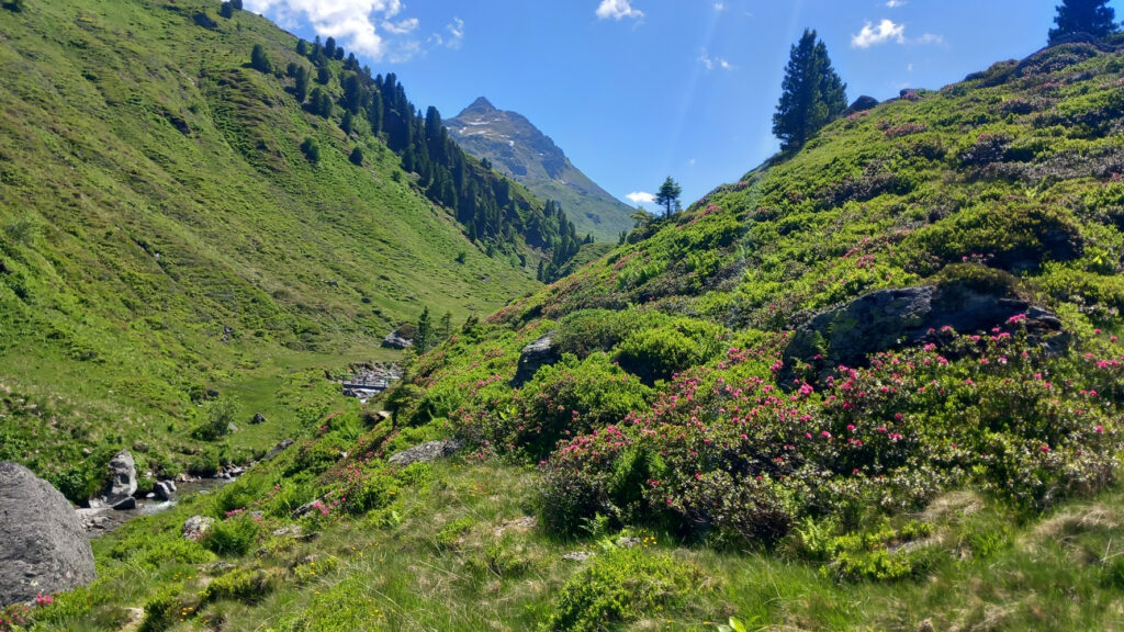 Edith und Martin sind beide als Quereinsteiger ins Leben als Hüttenwirtsleute gestartet und haben mit der Neuen Bamberger Hütte einen bezaubernden Ort gefunden, den sie für sechs Monate im Jahr ihr Zuhause nennen dürfen. Die Umgebung der Hütte, die im Winter wie eine märchenhaft eingeschneite Bilderbuchlandschaft aussieht, erinnert im Sommer mit den vielen Bächen im Hochtal an die schottischen Highlands oder an Neuseeland. Dass auf den Hängen und Wiesen rundherum Kühe grasen und man stets die ein oder andere Kuhglocke hört, komplettiert das Idyll der Bergkulisse. Für Edith ist es dort ganz besonders schön im Juni, wenn alle Hänge, mit Almrauschwiesen übersäht, rosa leuchten.