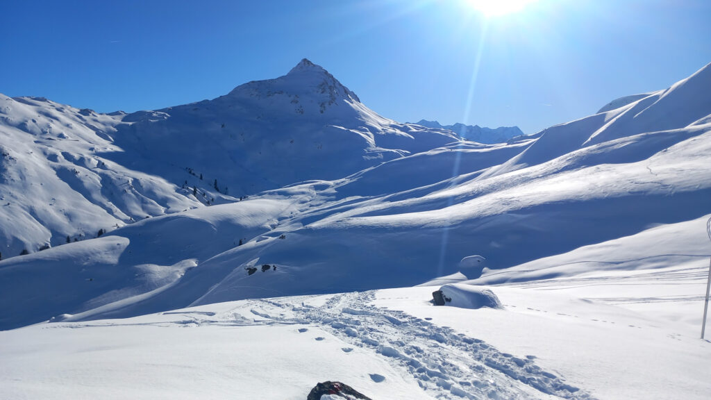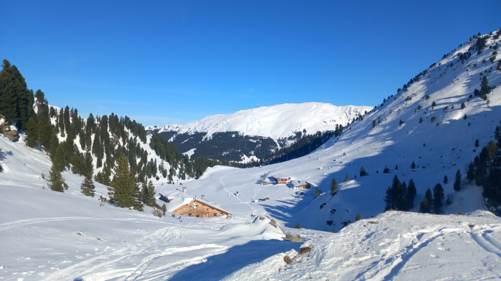 Wen eher Fakten interessieren, um einen Besuch auf der Hütte zu planen, kann sich freuen zu lesen, dass der Aufstieg in nur zwei Stunden zu bewältigen ist – und mit nur 630 Höhenmetern auch für Einsteiger auf Tourenskiern oder Schneeschuhen geeignet ist. Auch die nahen Berggipfel, wie die Aleitenspitze (2.450m) und der benachbarte Schafsiedel (2.447m), der Tristkopf (2.361m), das Kröndlhorn (2.444m) oder der Salzachgeier (2.469m) sind von der Hütte aus – je nach Kondition – in zwei bis drei Stunden erreichbar. Besonders für Einsteiger ist hier die Tour auf den Schwebenkopf (2.354m) zu empfehlen, da es die kürzeste und leichteste Skitour ist, die man von der Hütte aus starten kann.