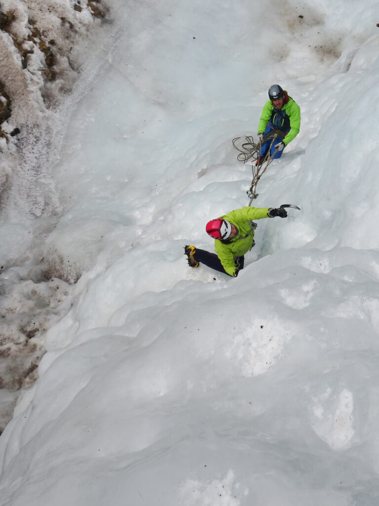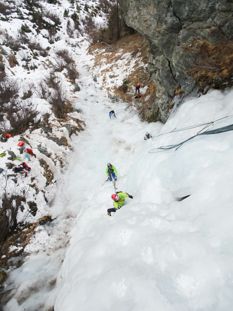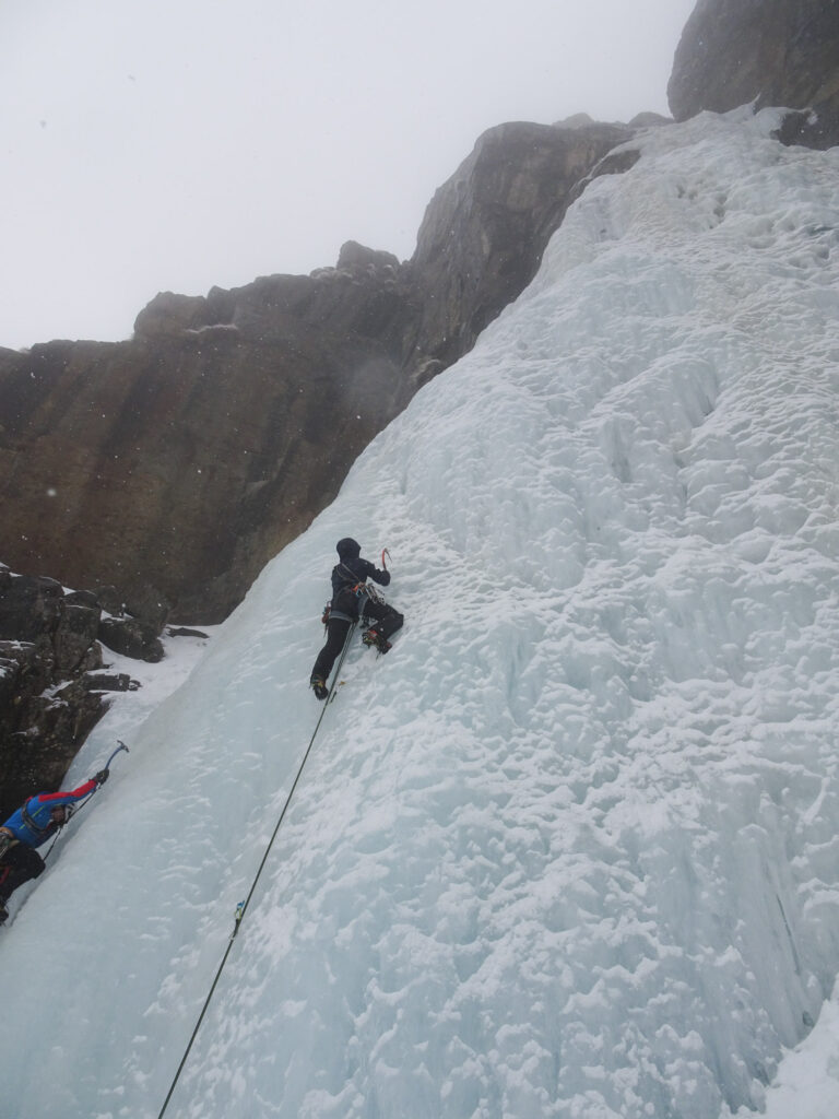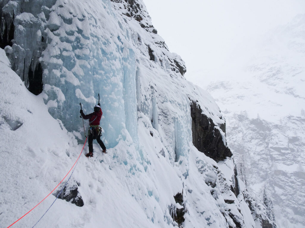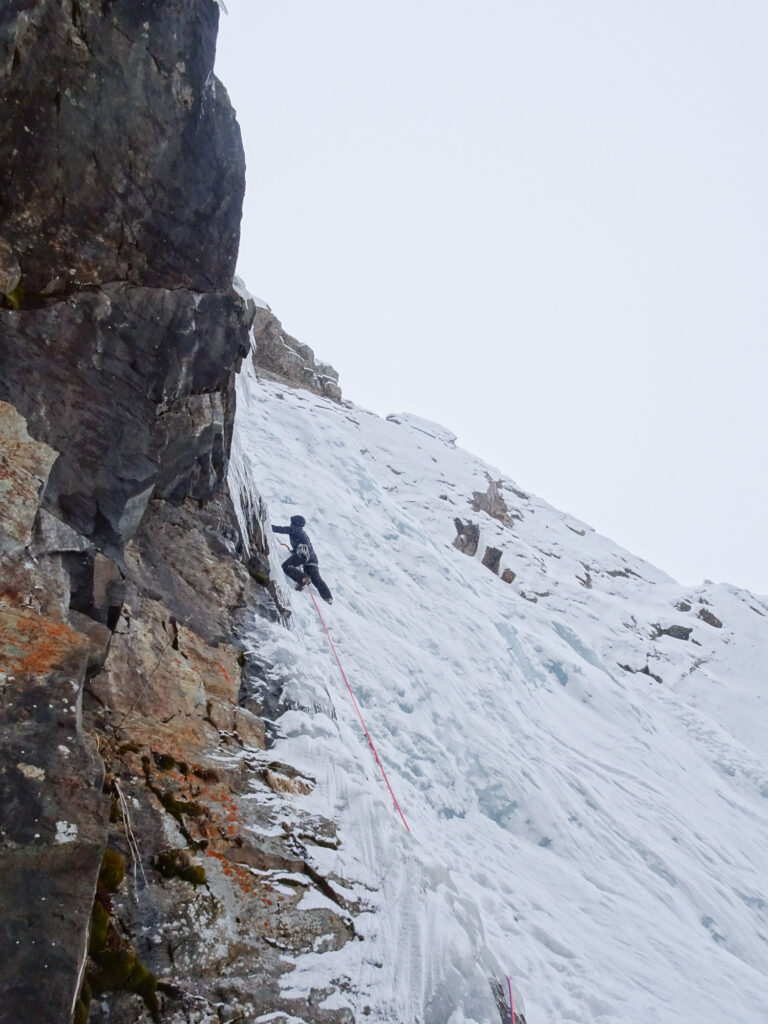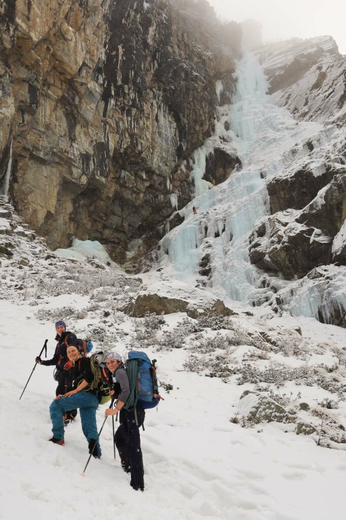 Wie kräftezehrend das Eisklettern ist, merkten wir in diesen Tagen besonders. Am Ende der Tage war von unserem gewohnten Redefluss meistens nicht mehr viel übriggeblieben. Die Tipps und Tricks und die tägliche mehrstündige Praxis im Pickeln machten uns mit der Sportart jedoch viel umgänglicher und vertrauter. Unsere Leidenschaft zum Bergsport war auch von stürmischem Schneefall, nassen Klamotten und gepumpten Unterarmen nicht zu bremsen. Gefüllt mit neuen Erfahrungen und Erkenntnisse waren wir gedanklich bereits wieder auf Tour zum nächsten Abenteuer.
