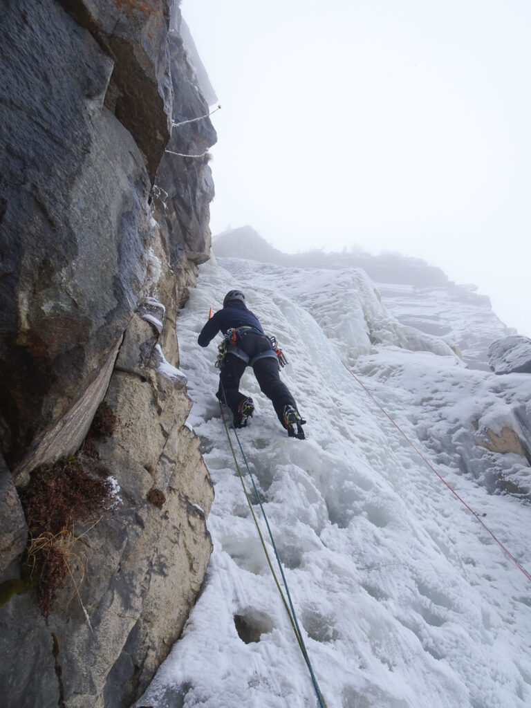 Beim Drytoolen im T-Shirt in der Sonne konnten wir uns keineswegs vorstellen, einige Tage später in Cogne (Aosta) überhaupt Eis zu finden und schon gar nicht auf gutem Eis zu klettern. Hinzu kam die Schlechtwettervorhersage für das geplante Wochenende, welche unseren Tripp kurzzeitig in Frage stellte. Trotzdem entschieden wir uns dazu, die Zeit zu nutzen und das Beste daraus zu machen. Auch bezüglich der Eisqualität täuschten wir uns.