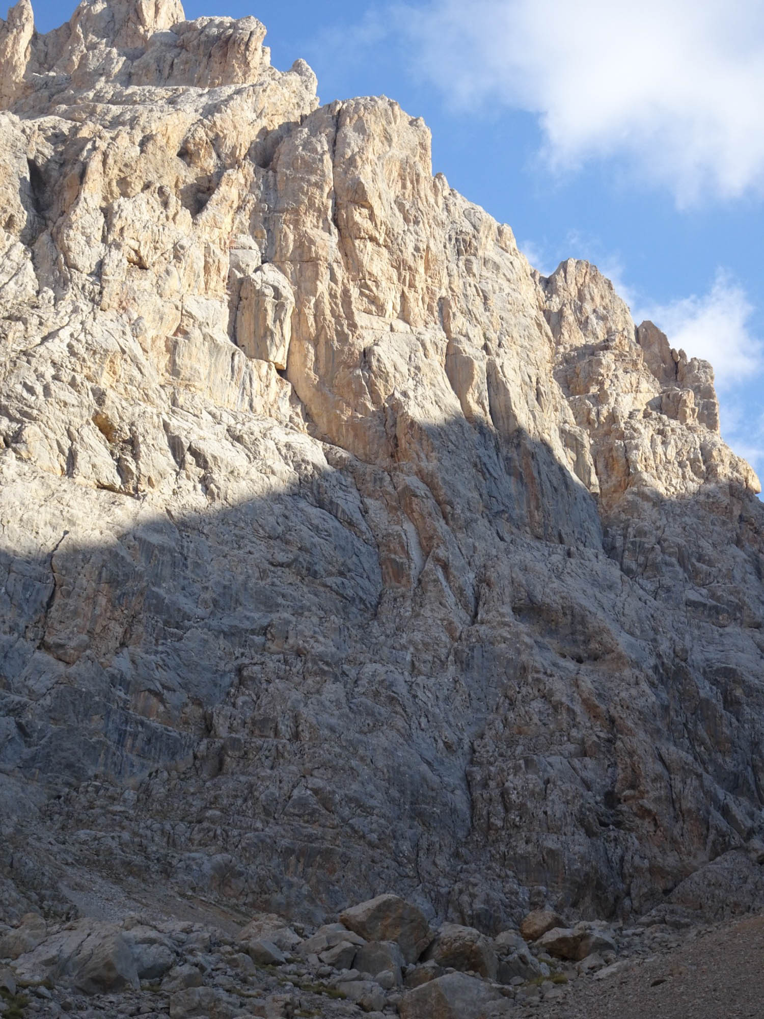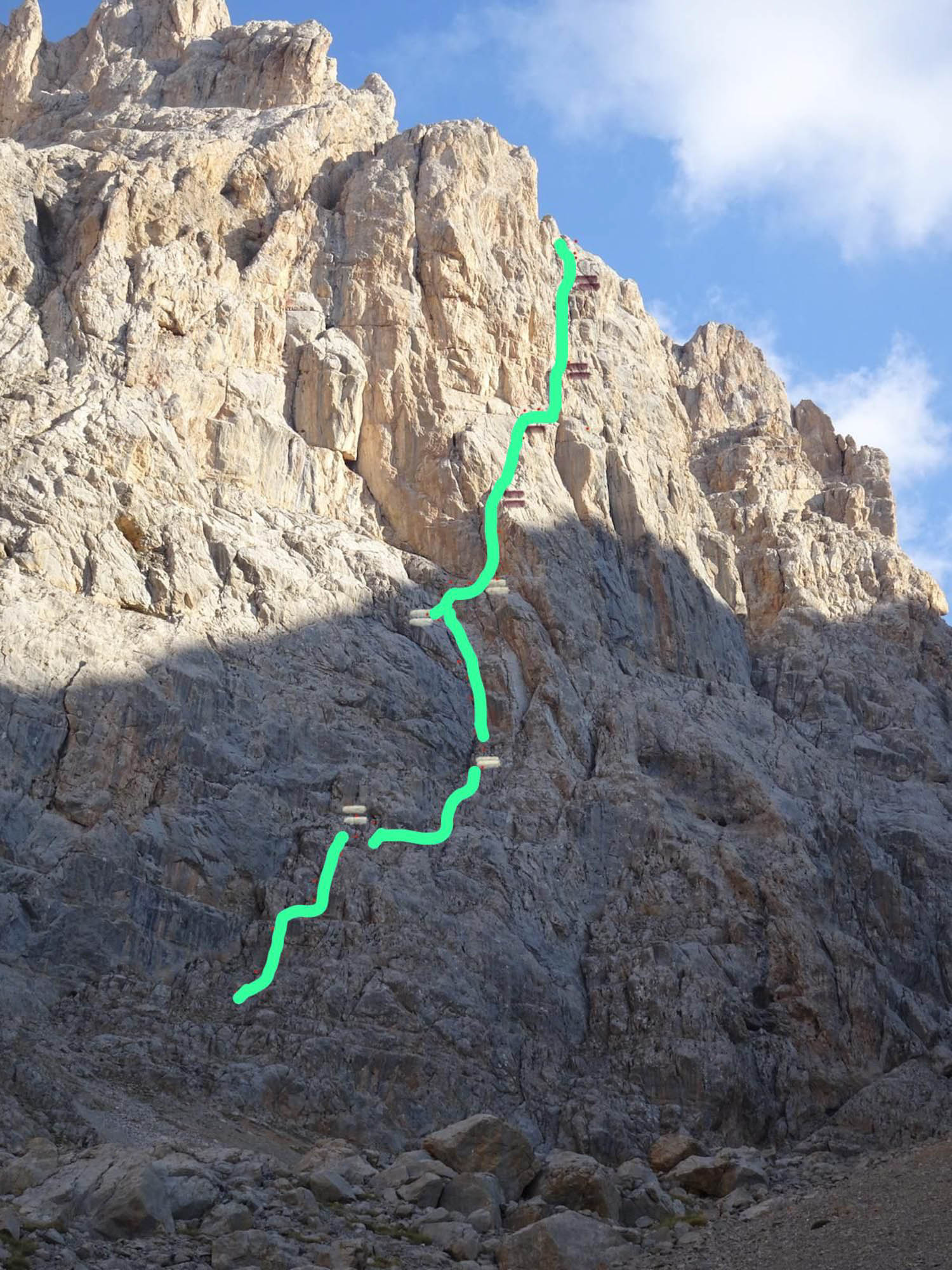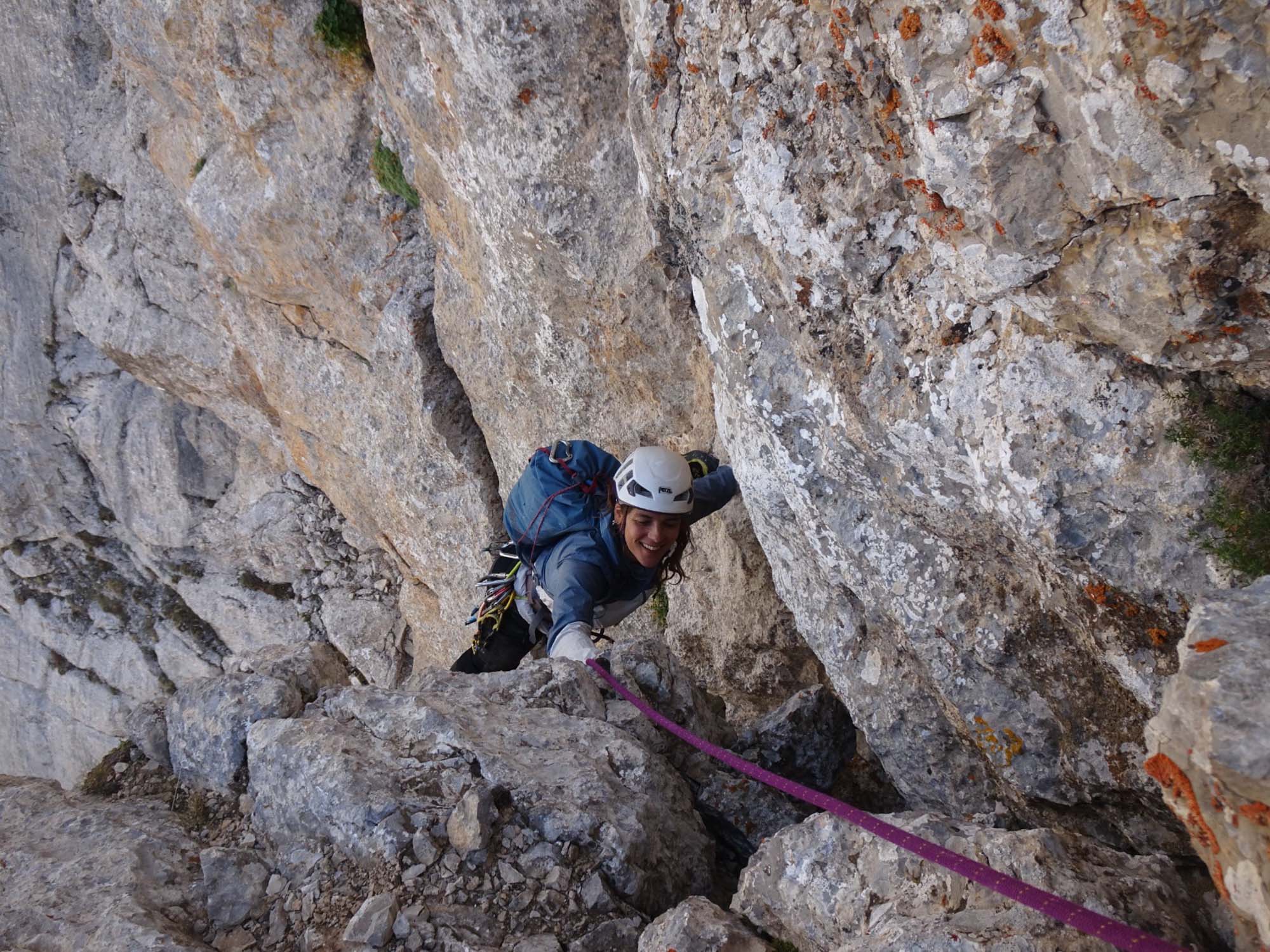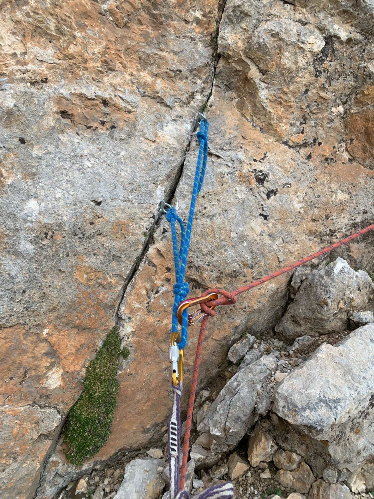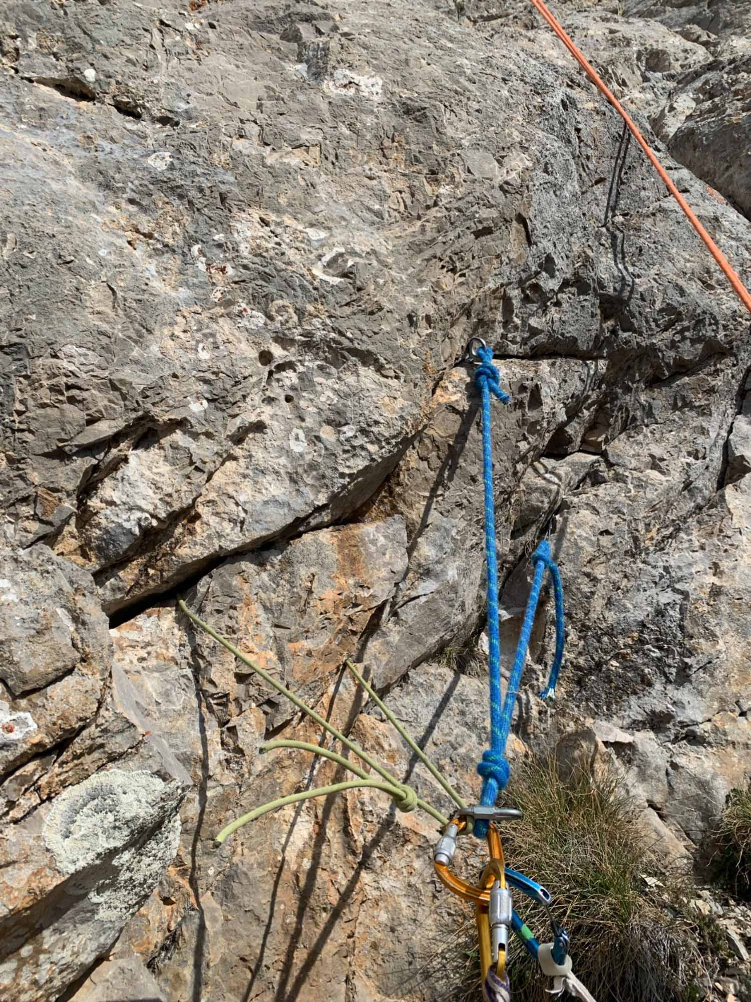 Charakter: Es handelt sich um eine kleine aber nette Abenteurtour. Die Tour wurde von mir, meiner Freundin Rachele und 2 Katalanischen Freunden, die wir im Camping vor ort kennengelernt haben, erstbegangen. Verwendet wurden 17 Haken ( Alle die ich dabei hatte). Es wurden keine Bohrhaken verwendet. Der Fels ist im ersten Teil etwas brüchig im zweiten Ausgezeichnet.