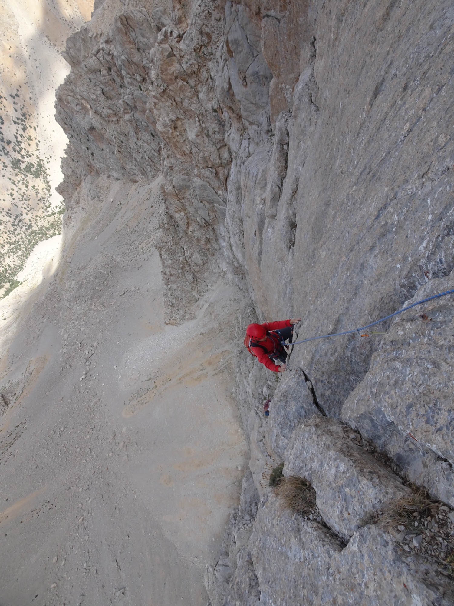 Zustieg: Diese Route befindet sich in einem Seitental des Emly Vadisi Valley ( Selber Parkplatz wie fuer Parmakkeia).  Ca. 100 meter nach dem Parkplatz erblickt man rechts ( orographisch links) die Wand. Man folgt dem Weglosen Gelaende nach NE bis zum Einstieg.