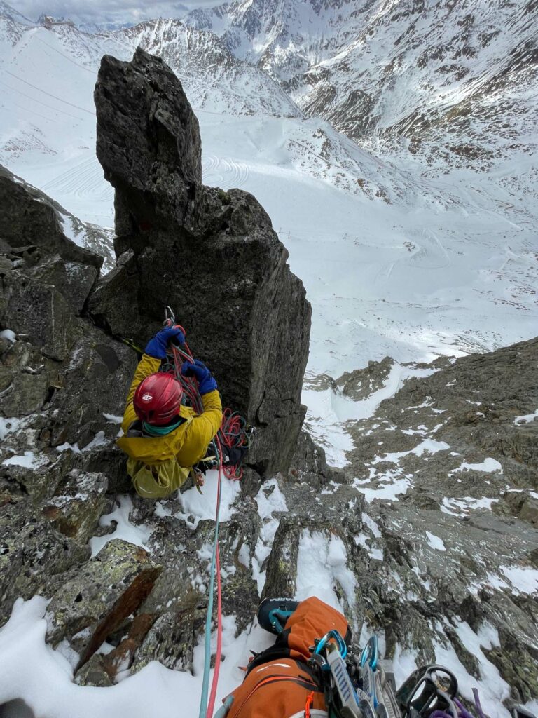 Erstbegehung der Route "Friede-Freude-Eierkuchen Diretissima" an der Schwarze Wand am Schnalstaler Gletscher von Paul Peukert und Felix Beltramo
