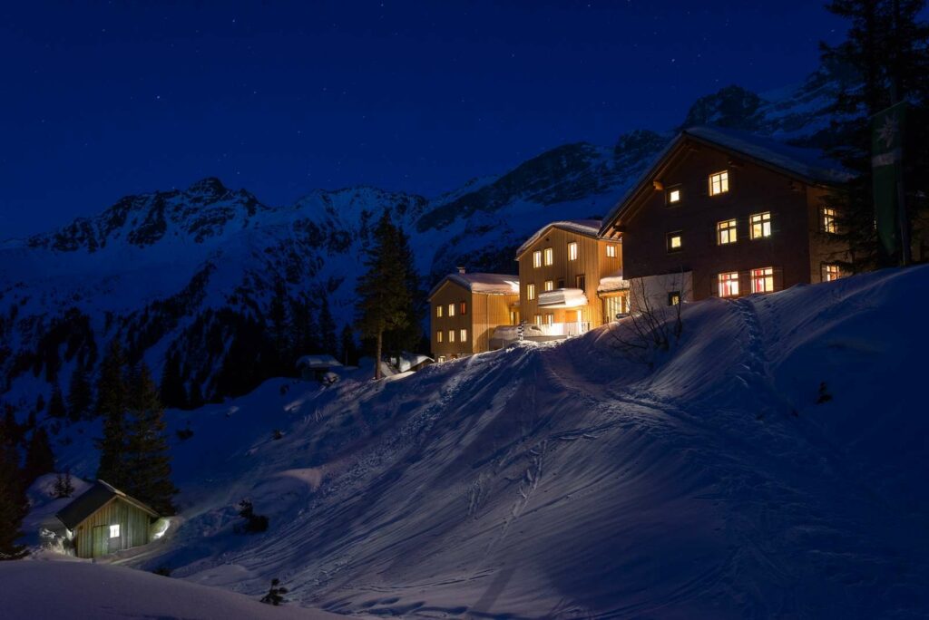 Die Lindauer Hütte liegt auf 1.744 m traumhaft im Talschluss des Gauertals unter den Gipfeln der Drei Türme, Sulzfluh und Drusenfluh. Im Winter ist die Hütte ein Paradies für Skitouren oder zum Rodeln, im Sommer ist sie eine großartige Location zum Wandern, Klettern oder auch zum Biken.
