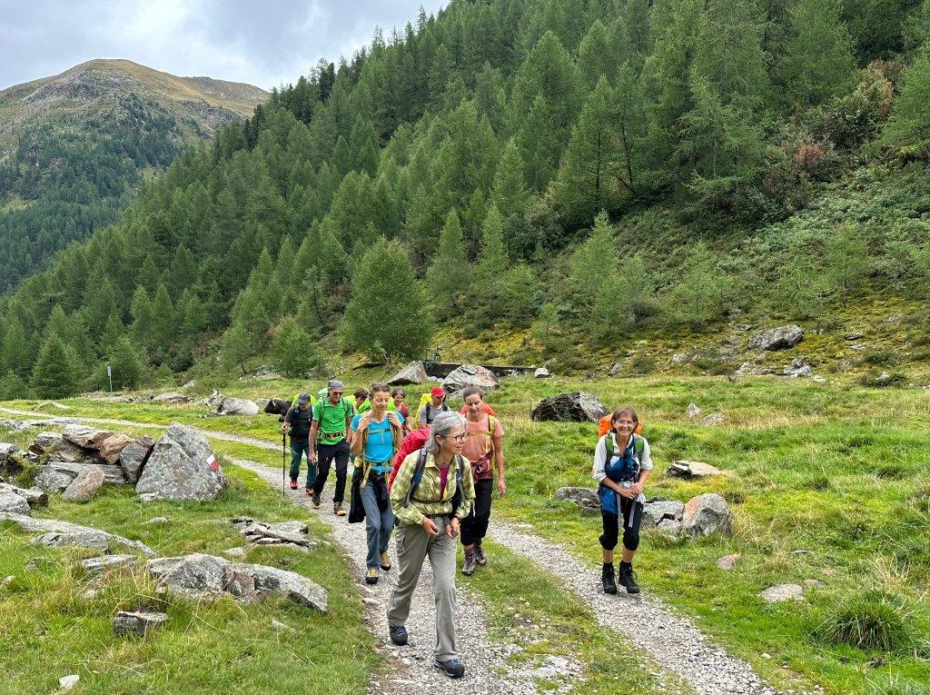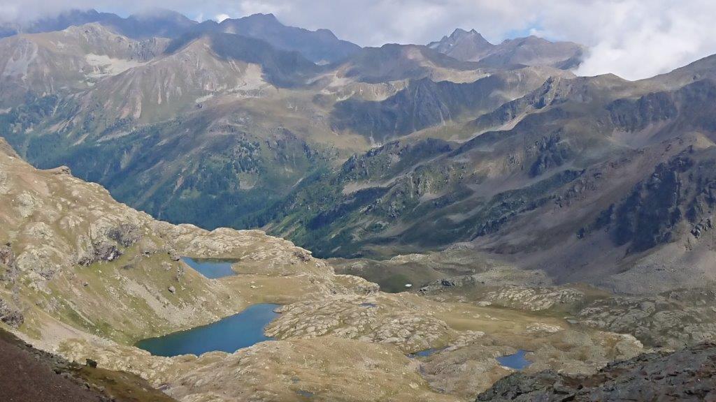 Mit dem etwas späteren Start am Samstag konnten wir dem ausklingenden Regen von Freitag Nacht und Samstag Morgen ausweichen, um bei einigen wenigen Nebel- und Wolkenschwaden, aber auch schon mit etwas Sonne durch das Kirchbergtal die Haselgruberhütte zu erreichen. Nach der Mittagspause bei dieser kleinen, aber feinen Hütte folgten wir dem Steig zu den, nun schon teils im Sonnenlicht schimmernden Haselgruber Seen, vorbei am Glecksee und zum Gleckspitz (2.957 m), bei dem sich die Sicht leider ein wenig eingetrübt hatte. Allerdings konnten wir unser Ziel, die Dorigonihütte im Sallenttal sehr gut sehen, da auf dieser Seite des Bergkammes das Wetter besser war.