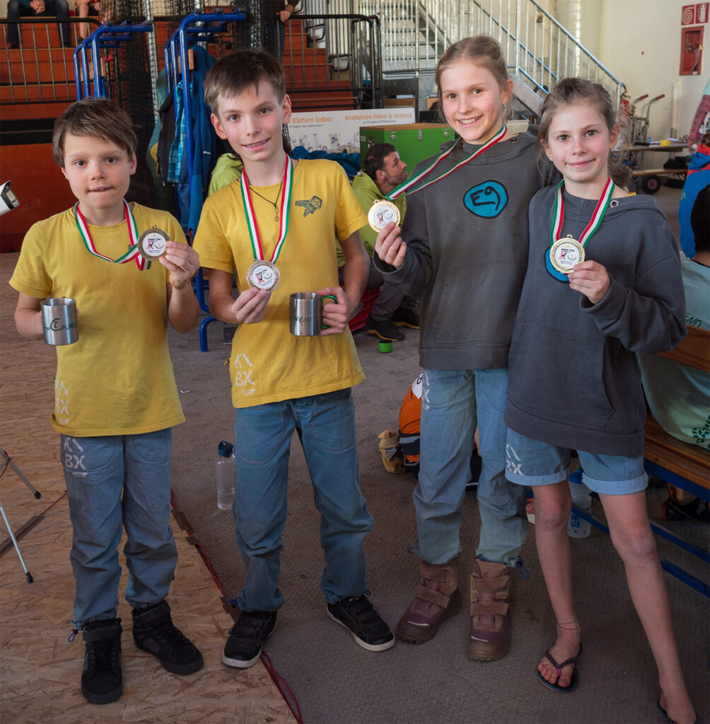 Der Sonntag begann mit dem Teambewerb der U10, hier standen der Spaß und das Hineinschnuppern in den Wettkampf im Vordergrund. Wie auch bereits in Arco beim Boulderbewerb gewannen die Kinder des Teams Ibrsche 1, vor den AVS Brixen Boys und den Meraner Muskeltieren.