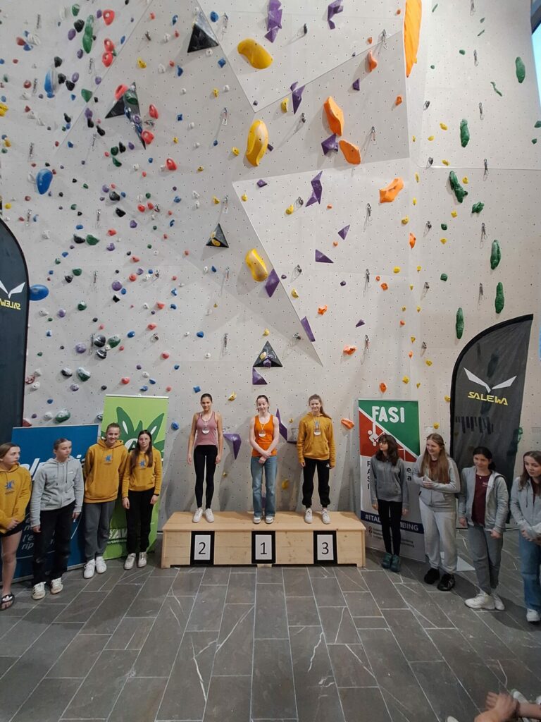 In der Kategorie U18 der Frauen gab es ein spannendes Finale: Julia Gurschler schaffte als Achte knapp den Einzug ins Finale, kehrte dann die Ergebnisliste um und kletterte als Beste ihrer Kategorie auf Platz eins. Zweite wurde ihre Teamkollegin vom AVS Meran, Miriam Amelie Peer, und Platz drei ging an Veronika Cagol (AVS St. Pauls).