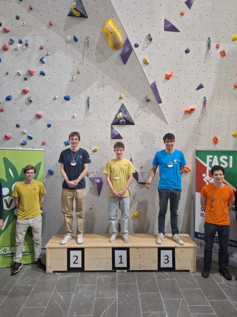 Im Finale kletterte Fritz Engele (AVS Meran) als einziger bei den Männern Top, Libero Feller von Trento Boulder und Elias Hopfgartner (AVS Bruneck) belegten die Plätze zwei und drei. Für Hopfgartner war es der erste Podiumsplatz im Juniorcup.