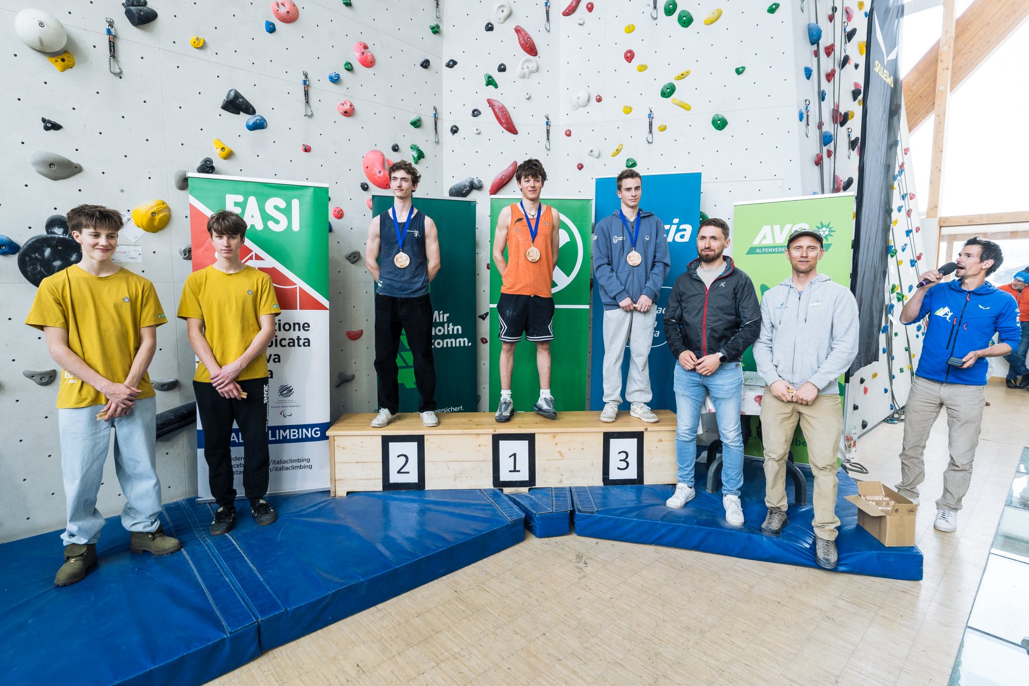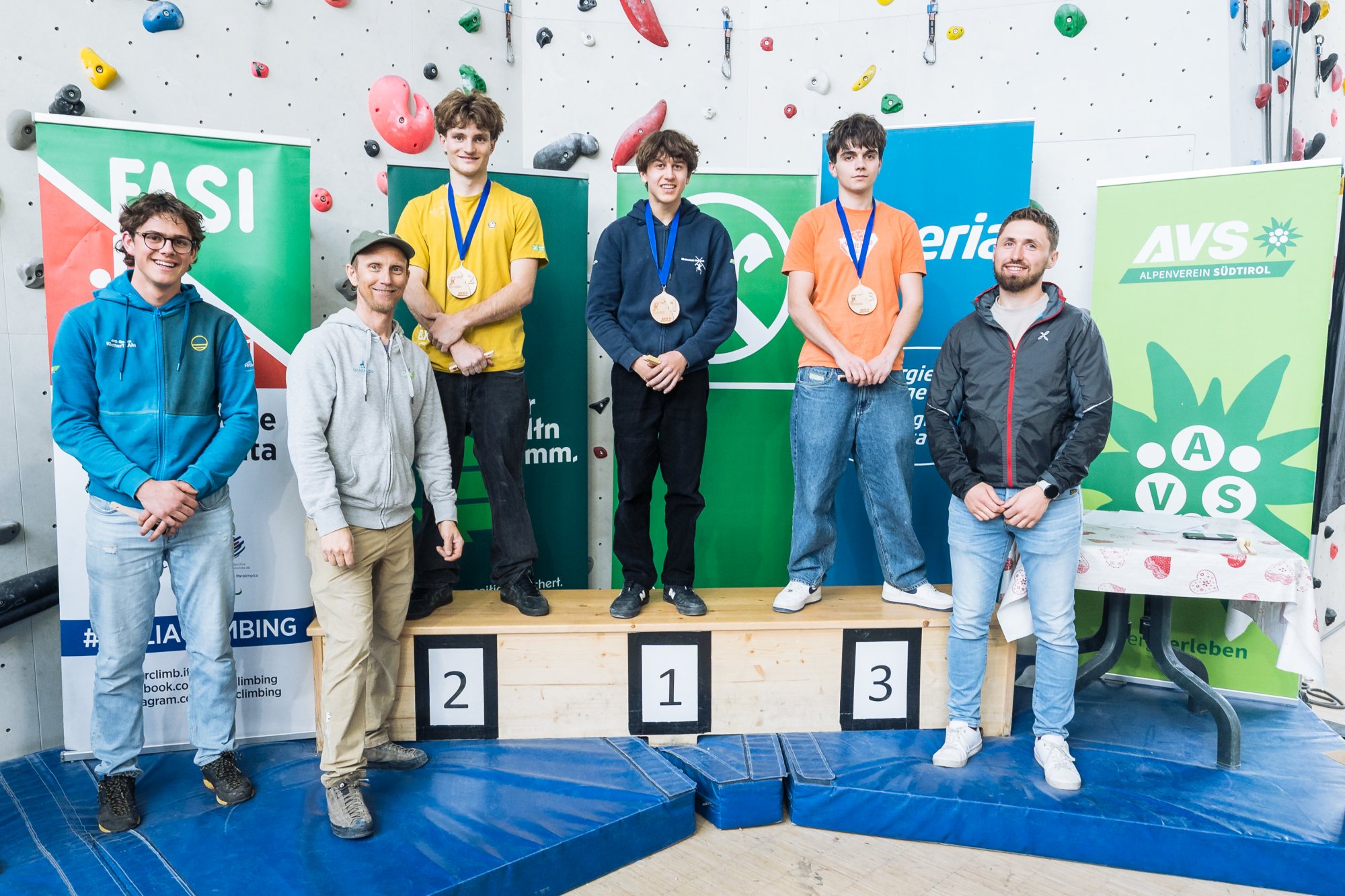 Bei den Buben erwischte Patrick Valcanover (Trento Boulder) einen hervorragenden Tag und gewann vor einem stark auftrumpfenden Janis Kugler (AVS Meran) sowie Jakob Hofer (AVS Passeier).