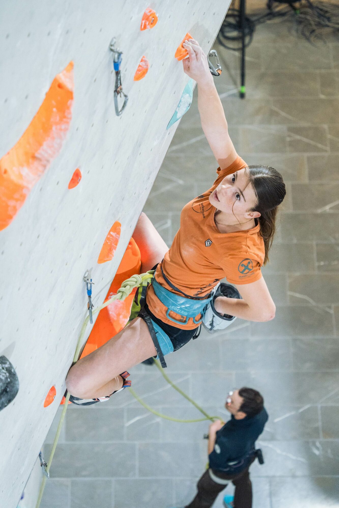 Am Sonntag standen die älteren Kategorien auf dem Programm. Nach den Qualifikationsrunden ging es für die stärksten Athletinnen und Athleten ins Finale – und dort warteten technisch anspruchsvolle und im überhängenden Wandbereich äußerst kraftintensive Routen.