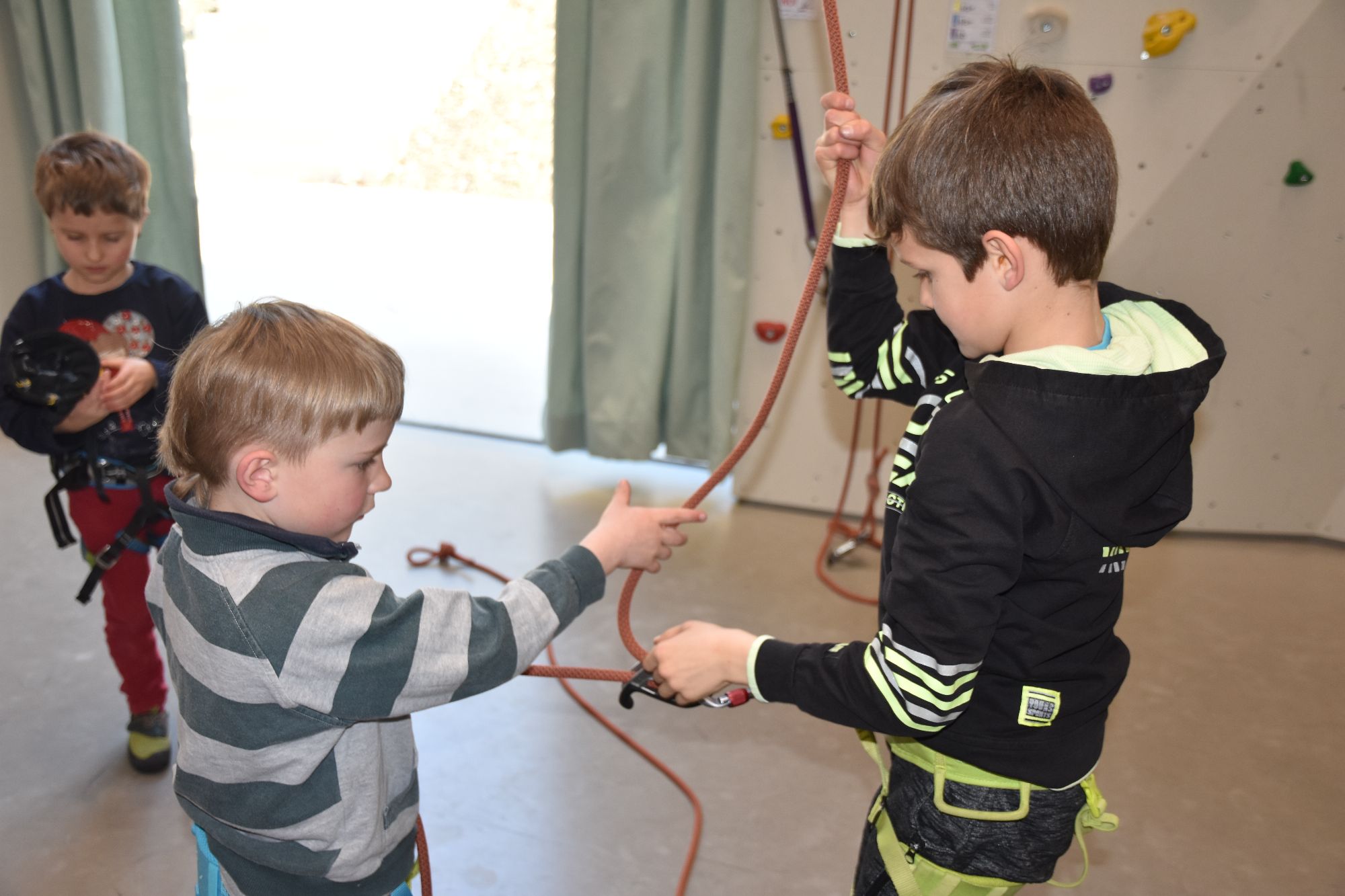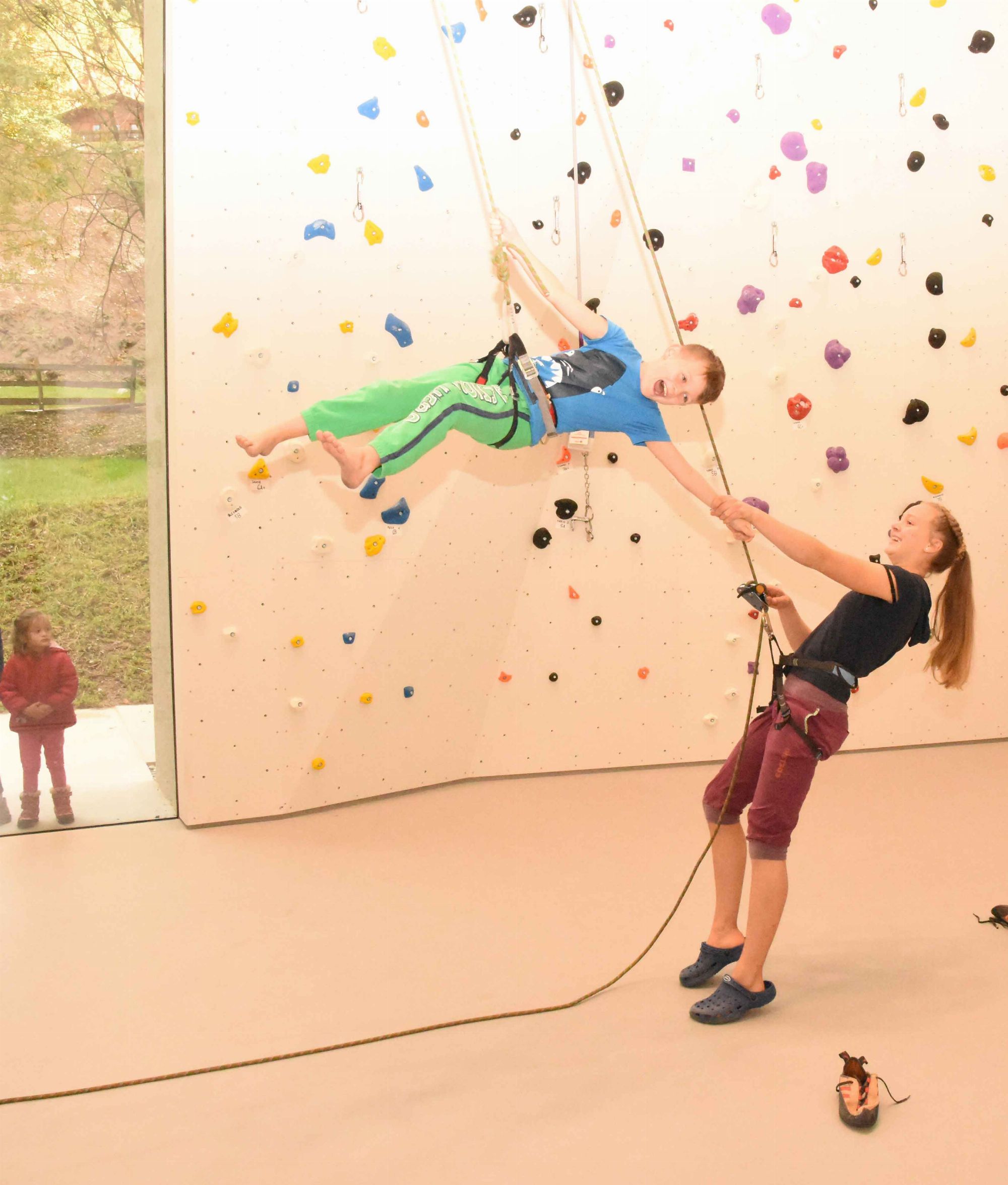 Spielerisches Kennenlernen und das Erlernen des Kletterns und Sicherns stehen hier im Vordergrund. Unsere Kletterlehrer bieten hier den richtigen Mix aus Spaß und Spiel und Verantwortung und Lerninhalten. Das Ziel des Kurses ist es, unter Aufsicht im Nachstieg klettern und sichern zu können und erste Klettertechniken zu beherrschen.