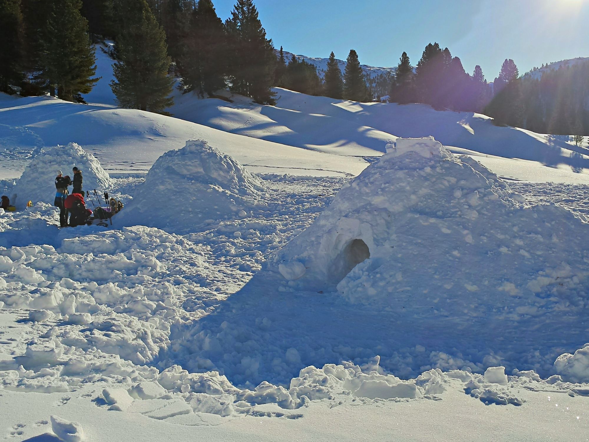 Hinweis:Die Iglus werden unweit der AVS Pederhütte gebaut, damit Eltern mit ihren Kindern falls gewünscht doch auch in der Hütte übernachten können.