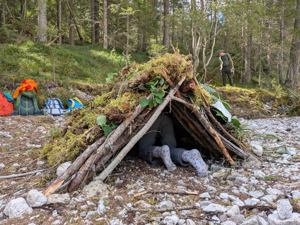 Hinweis:Die eventuelle Übernachtung im selbstgebauten Unterschlupf findet in der Nähe des AVS-Bergheims statt, sodass Eltern mit ihren Kindern eventuell auch dort übernachten können.