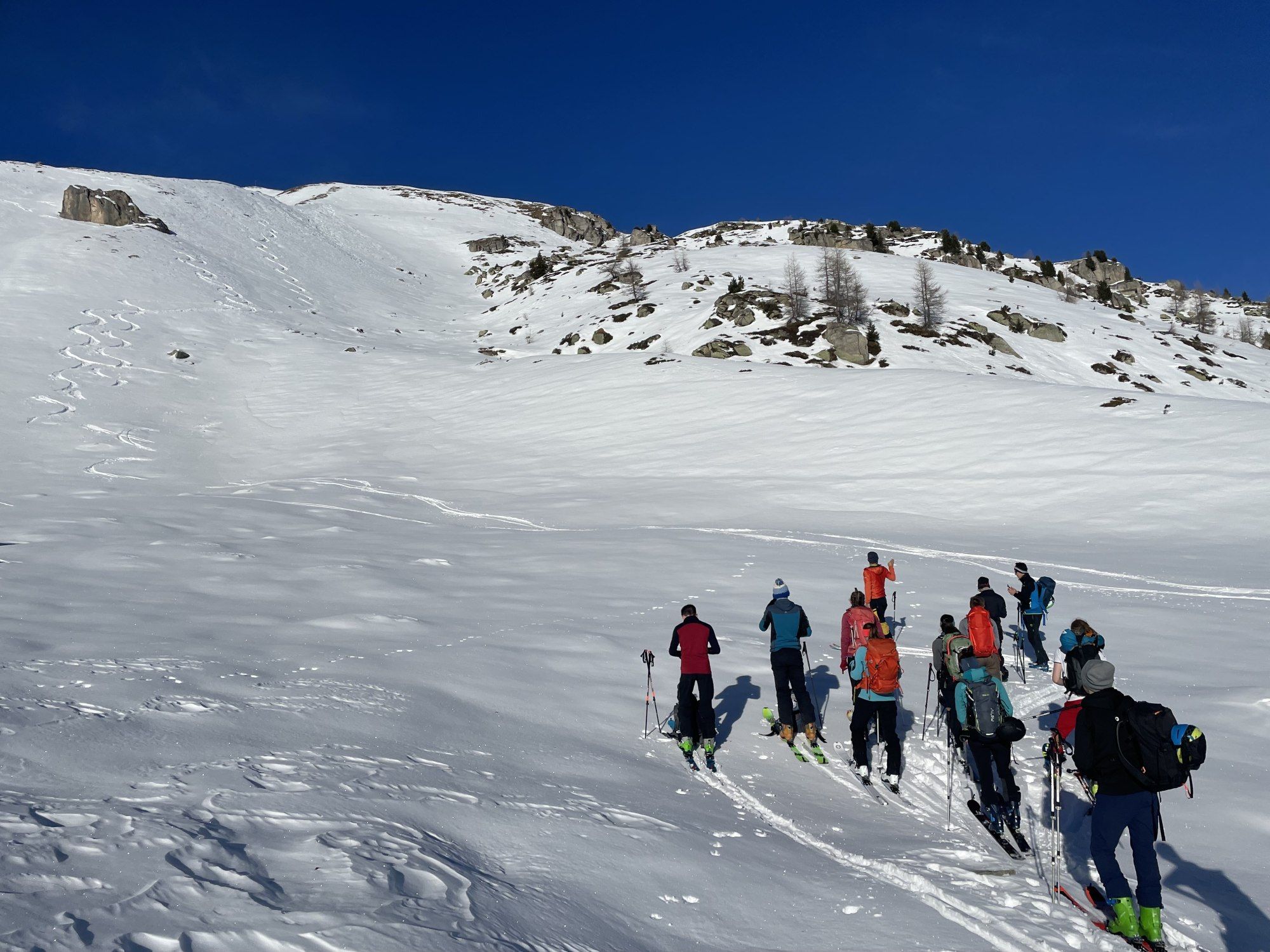 Programm:Schnee- und Lawinenkunde, Tourenplanung, Orientierung im Gelände, Anlegen einer Aufstiegsspur, sicheres Abfahren, Umgang mit Verschüttetensuchgerät, Sonde und Schaufel, Kamerad:innenrettung, Umsetzen des Gelernten auf Tour