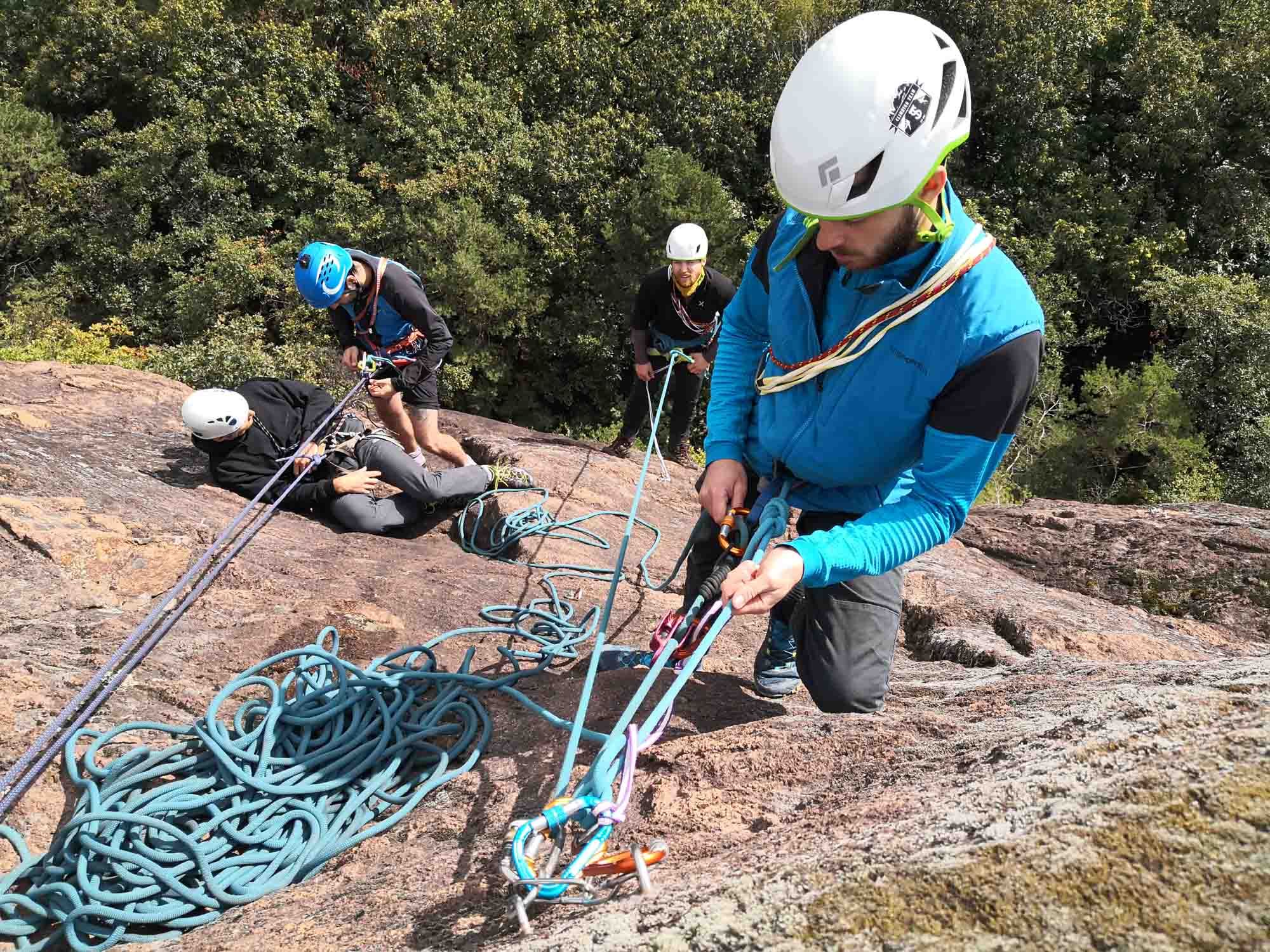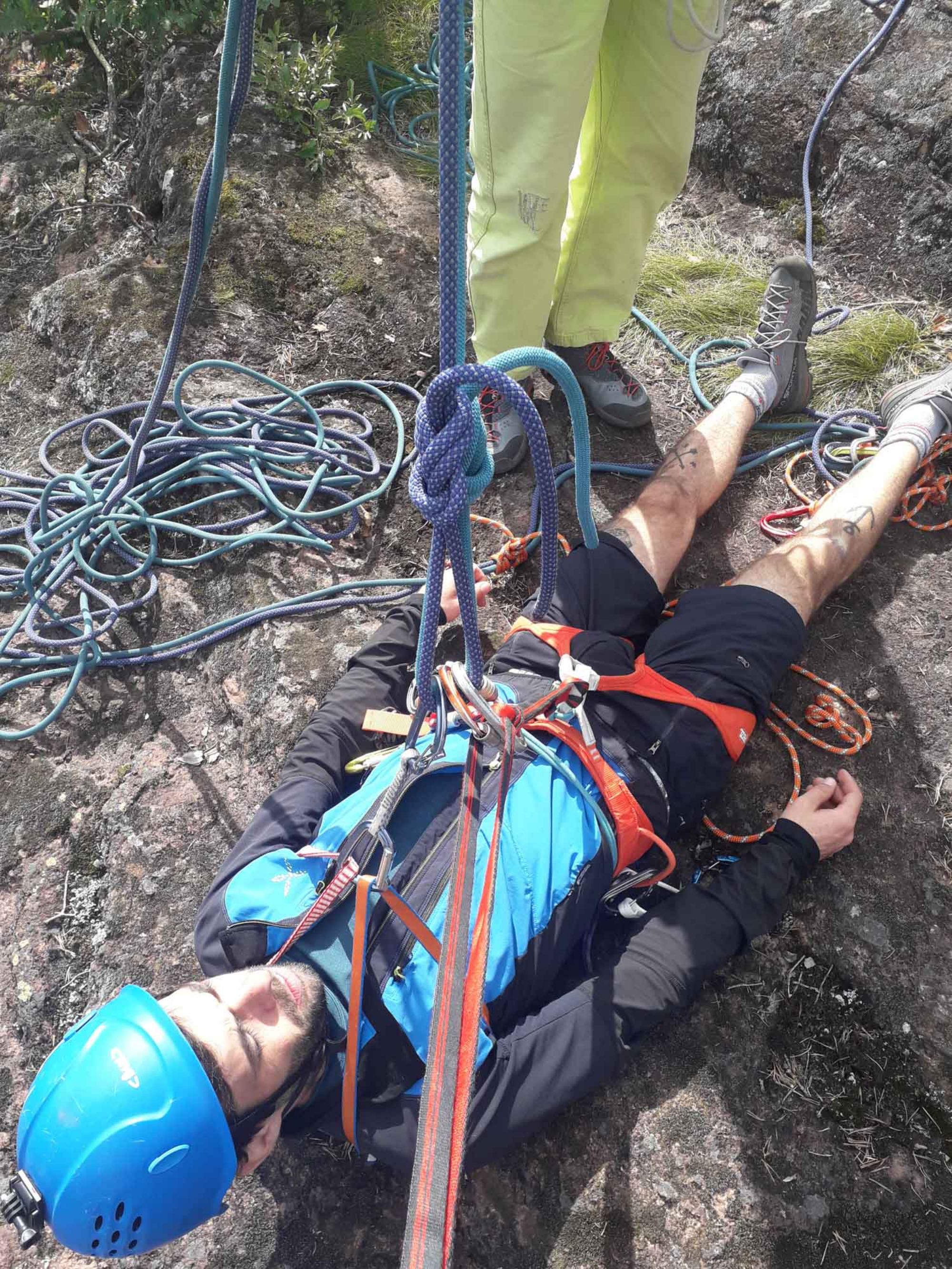 Wochenende: alpintechnische Tricks, Erste-Hilfe-Maßnahmen, behelfsmäßige Rettung, Übungen zur Vorbereitung auf Notfälle in hohen Wänden