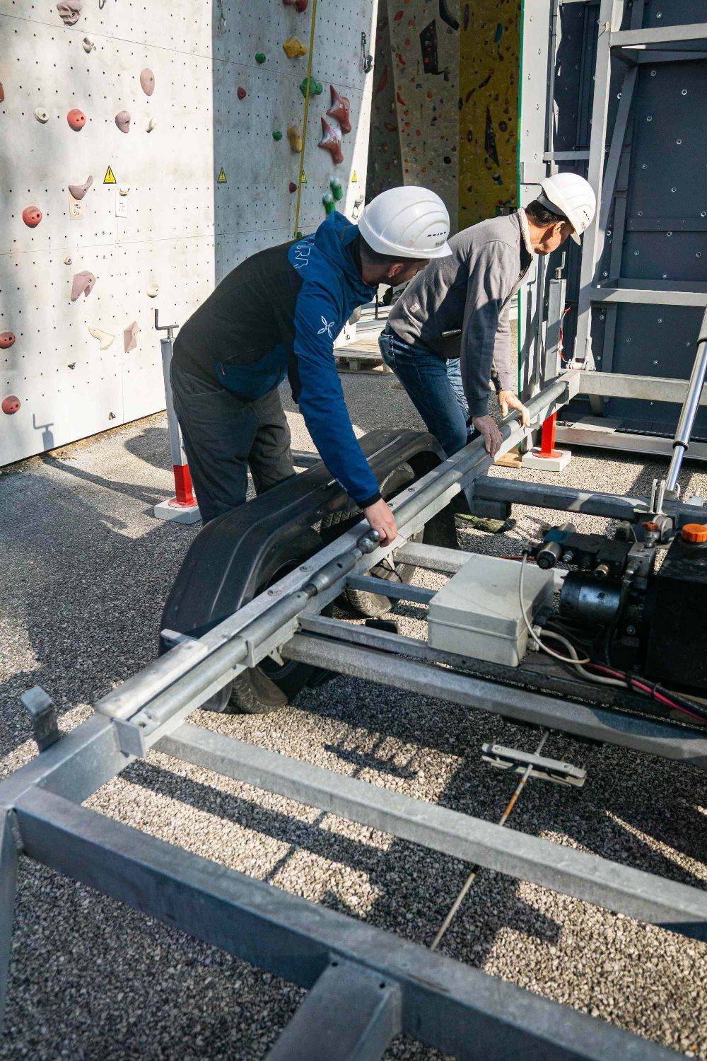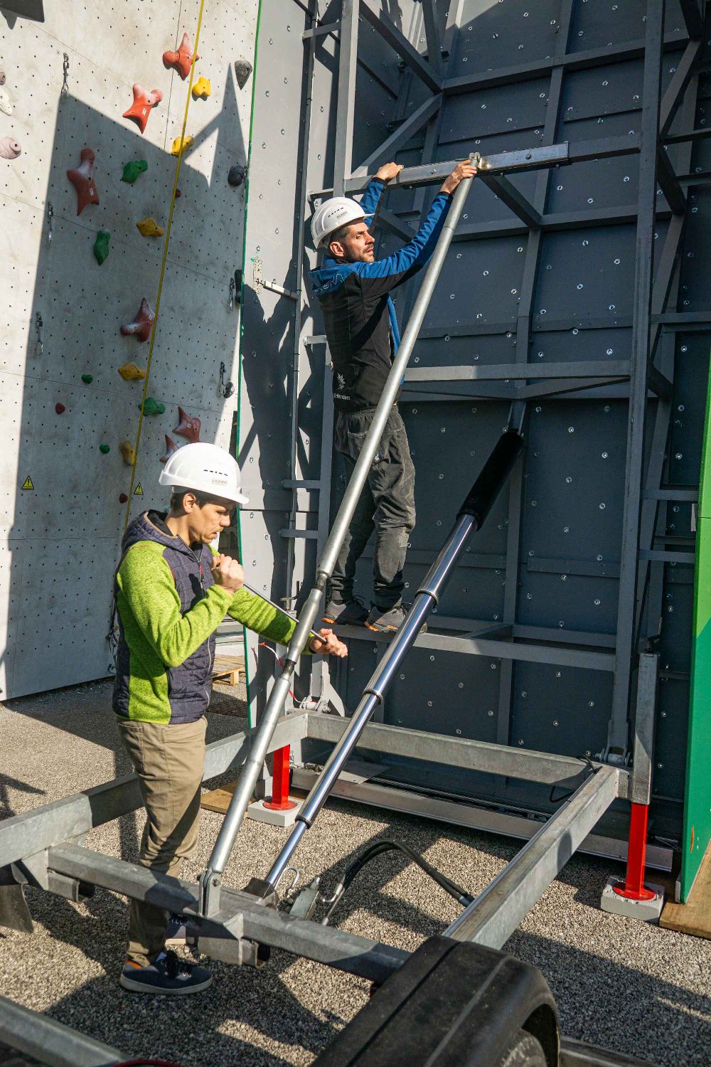 Für den Aufbau des mobilen Kletterturms braucht es eine Zertifizierung zur 'korrekten Montage'.