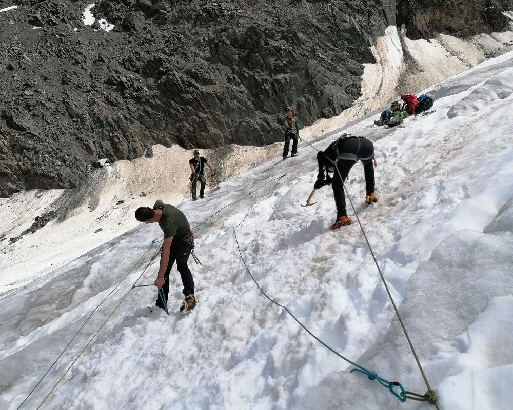Programm:Tag 1: Anfahrt, Aufstieg zur Schutzhütte, Materialkunde, Seiltechnik, Bewertung alpiner Gefahren, Tourenplanung & Orientierung, je nach Wissensstand der Gruppe wird die behelfsmäßige Rettung und Spaltenbergung geübt.