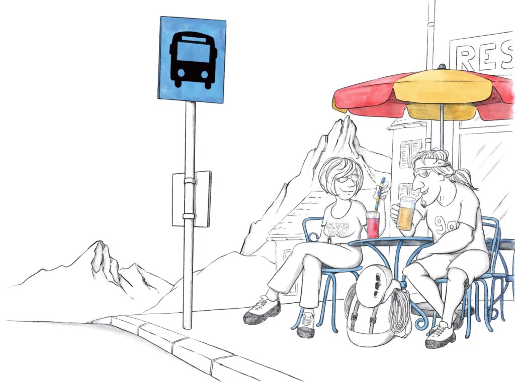 Verhältnis von Reisedistanz zu Aufenthaltsdauer verbessern, Konsum vor Ort trägt zur lokalen Wertschöpfung bei © CAA – Club Arc Alpin, Illustration Georg Sojer