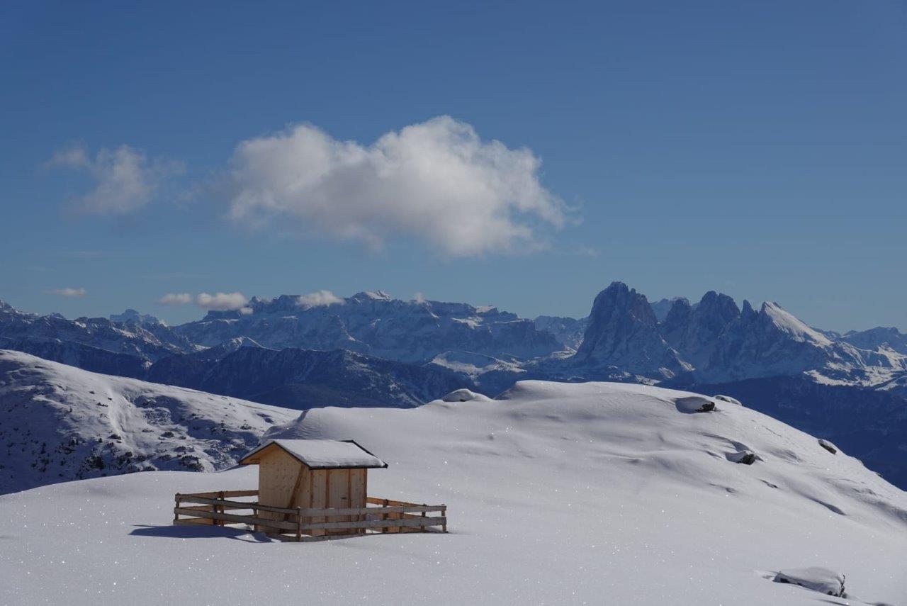 Wir fuhren mit dem Autobus von Bozen (Linie 150 und 152) ins sehr gut erreichbare Reinswald (Haltestelle Kabinenbahn) und machten uns in Richtung Getrumalm auf. Entlang des Weges bogen wir dann links auf die mäßig steilen Wiesenhänge ab und durchquerten Almwiesen und kleine Lärchenbestände. Schon bald erreichten wir den Hirzelweg, den wir ein kleines Stück entlanggingen. Schließlich bogen wir ins Tal ein, das sich an der Süd-Ostseite des Sattele befindet. Hier trifft man selten andere Skitourengeher und so war es auch an diesem Tag. Anstatt weiter oben zum Sattele aufzusteigen peilten wir das Plankenhorn (2.389 m) an.