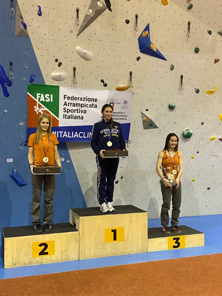 Auch das Damenfinale hatte es in sich: Die Boulder waren extrem anspruchsvoll, und nur Francesca Matuella (Aeronautica Militare) gelang ein Top sowie drei Zonen. Damit krönte sie sich zur Regionalmeisterin. Dahinter war es ein enges Rennen, die weiteren Medaillen gingen wiederum an das Meraner Kletterteam: Emma Benazzi holte Silber, Nadia Insam Bronze.