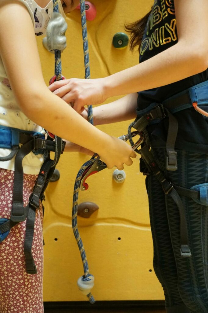 - Karabiner, Seil und Sicherungsgerät passen zusammen