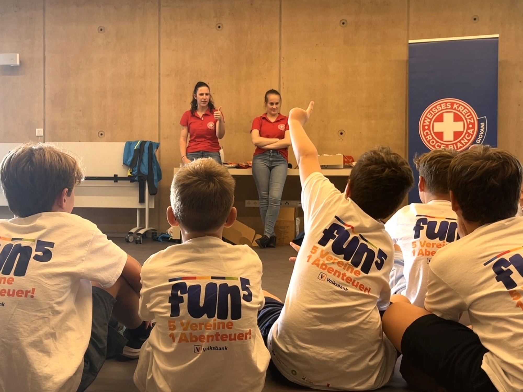Die Kinder und Jugendlichen werden spielerisch in die Rettungskette eingeführt und erlernen dabei einfache Erste-Hilfe-Maßnahmen. Außerdem haben sie die Möglichkeit, das Weiße Kreuz und die Sanitäter:innen aus nächster Nähe zu erleben.