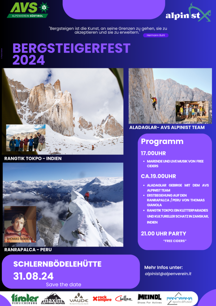 Infos und Anmeldung zu den Aktionen unter alpinist@alpenverein.it  oder beim Referat Bergsport, Stefan Steinegger unter 0471 053192.