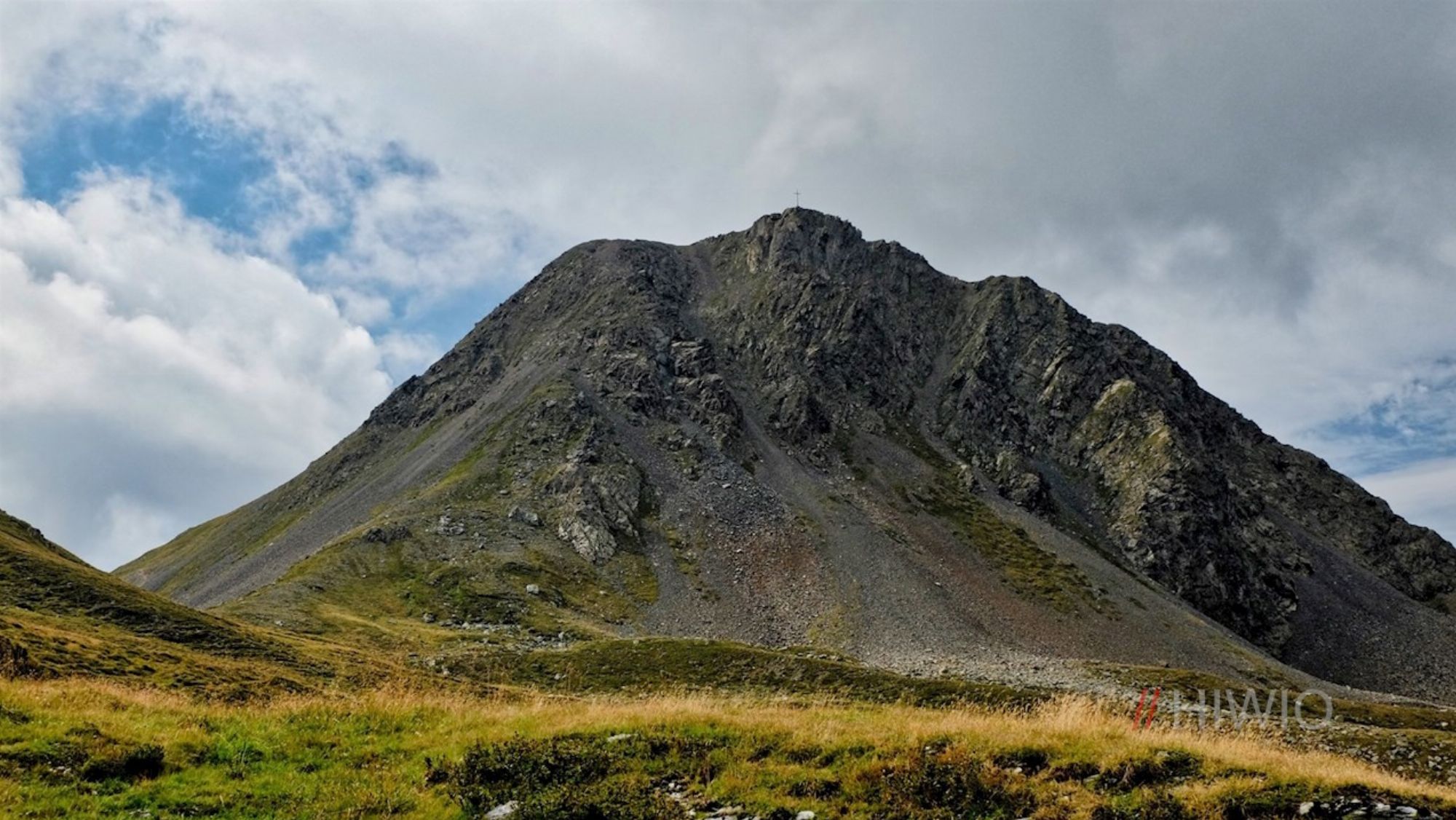 Vom Schutzhaus wandern wir aufwärts Richtung Giralbascharte (Abstecher auf die Scharte sehr lohnend – fantastische Tiefblicke zur Caduccihütte im Giralbatal). Immer leicht ansteigend kommen wir in das Innere Loch zu einem meist den ganzen Sommer über vorhandenen Schneefeld. Über Blockwerk, Geröll und schrofrigen Felsgelände aufwärts gelangen wir zum Nordgrat und zum überraschend flachen, nach Nordosten abfallenden Gipfelhang, zum Gipfelkreuz.