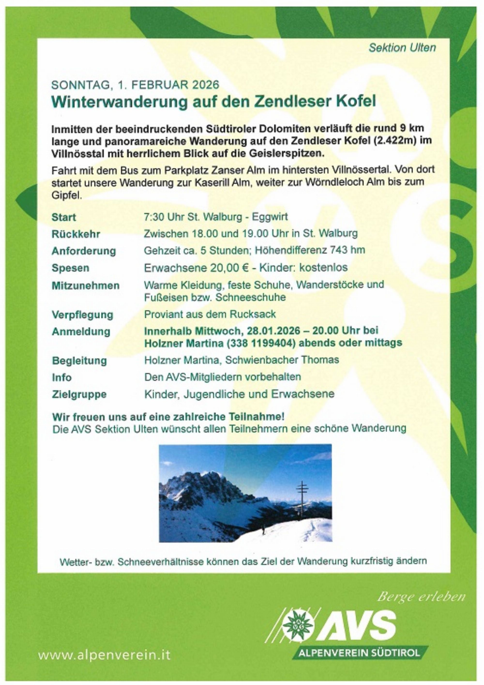 Programm:Treffpunkt um 9.00 Uhr beim Eggwirt. Fahrt mit Privatfahrzeugen nach St. Gertraud.
