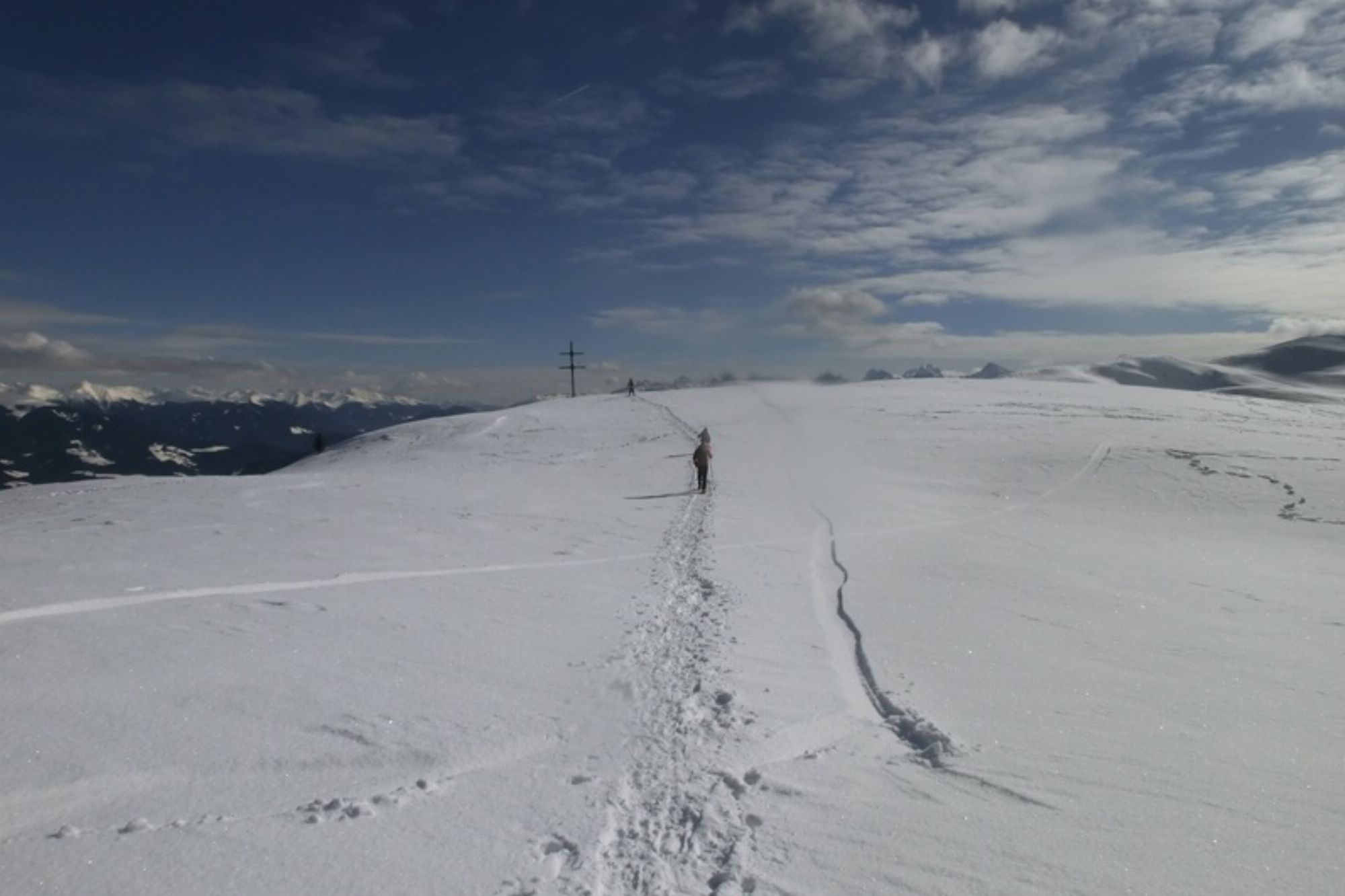 Programm:Von der Bushaltestelle Zumis oberhalb von Rodeneck im Eisacktal wandern wir zunächst entlang der Langlaufloipe in Richtung Roner Hütte. Nach wenigen hundert Metern biegt man links auf den Wanderweg Nr. 4 ab und gelangt durch den Wald zur Roner Hütte. Von hier aus geht es auf dem breiten Weg Nr. 2 weiter. Man geht an der Starkenfeldhütte vorbei bis zur Kreuzung, an der ein breiter Weg links weiterführt. Dann geht es die Route 2 (Beschilderung: Jakobsstöckl) etwas steiler bergauf entlang des Kamms des Astjochs. Von hier aus führen mehrere Spuren zum Gipfel, einige kürzer, aber steiler, andere länger, aber weniger anspruchsvoll. Vom Gipfel auf fast 2.200 m genießt man ein fantastisches Panorama. Abstieg entlang des Kamms (Markierungen im Winter nicht sichtbar) bis zur Kreuzwiesenhütte. Von hier aus gehen wir den Wanderweg nach Flitt oberhalb von Lüsen, wo wir den Shuttlebus nach Lüsen nehmen.
