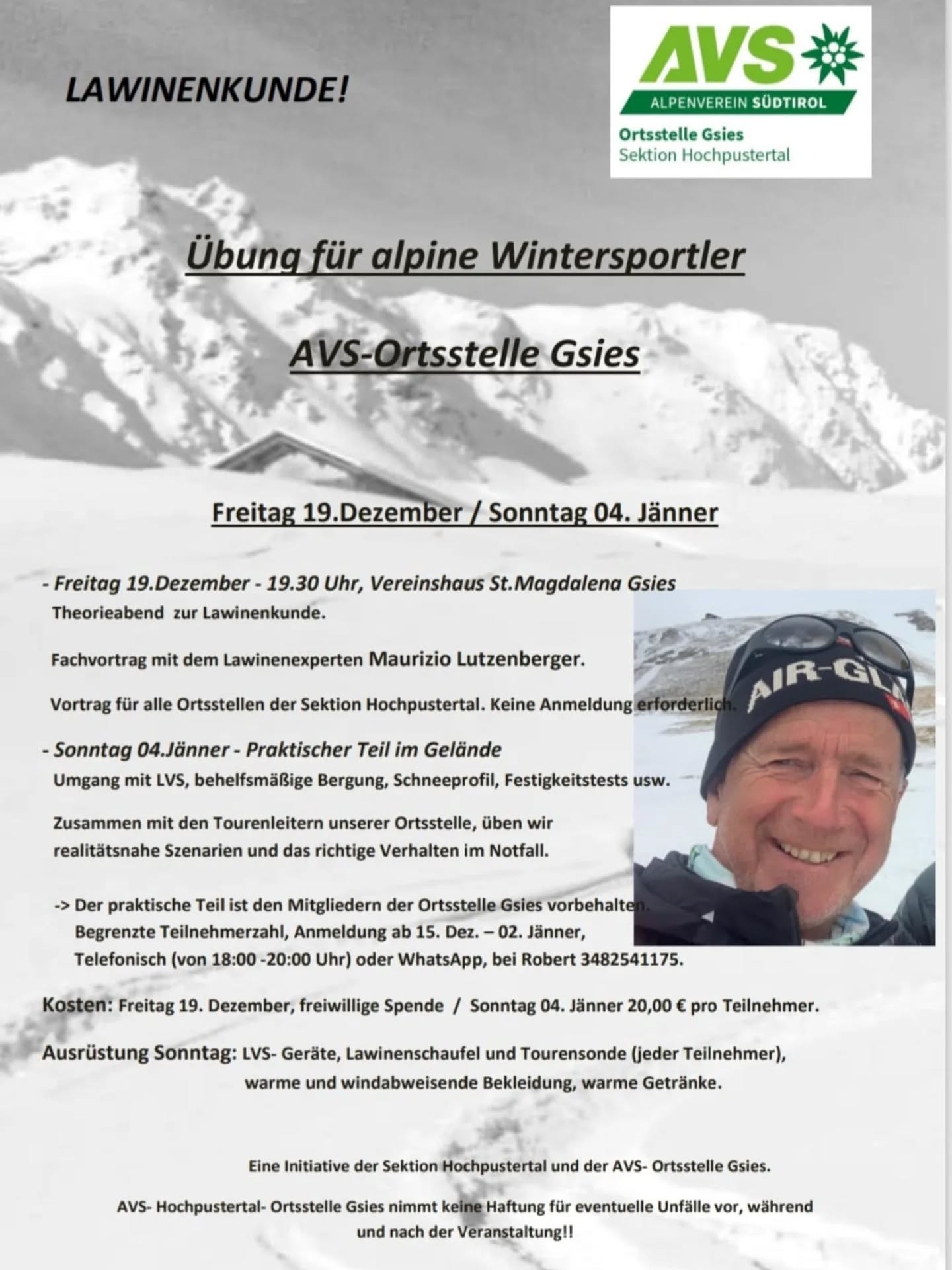 Im Rahmen der AVS-Kampagne Sicher durch den Winter fanden 2021 mehrere Online-Lawinenvorträge statt. Zusammen mit dem Bergrettungsdienst im AVS, dem Lawinenwarndienst Südtirol und dem Bergführerverband Südtirol entstanden umfangreiche Vorträge über Lawinenreport, Tourenplanung, Notfälle, Kameradenrettung und rechtliche Aspekte beim Auslösen einer Lawine.