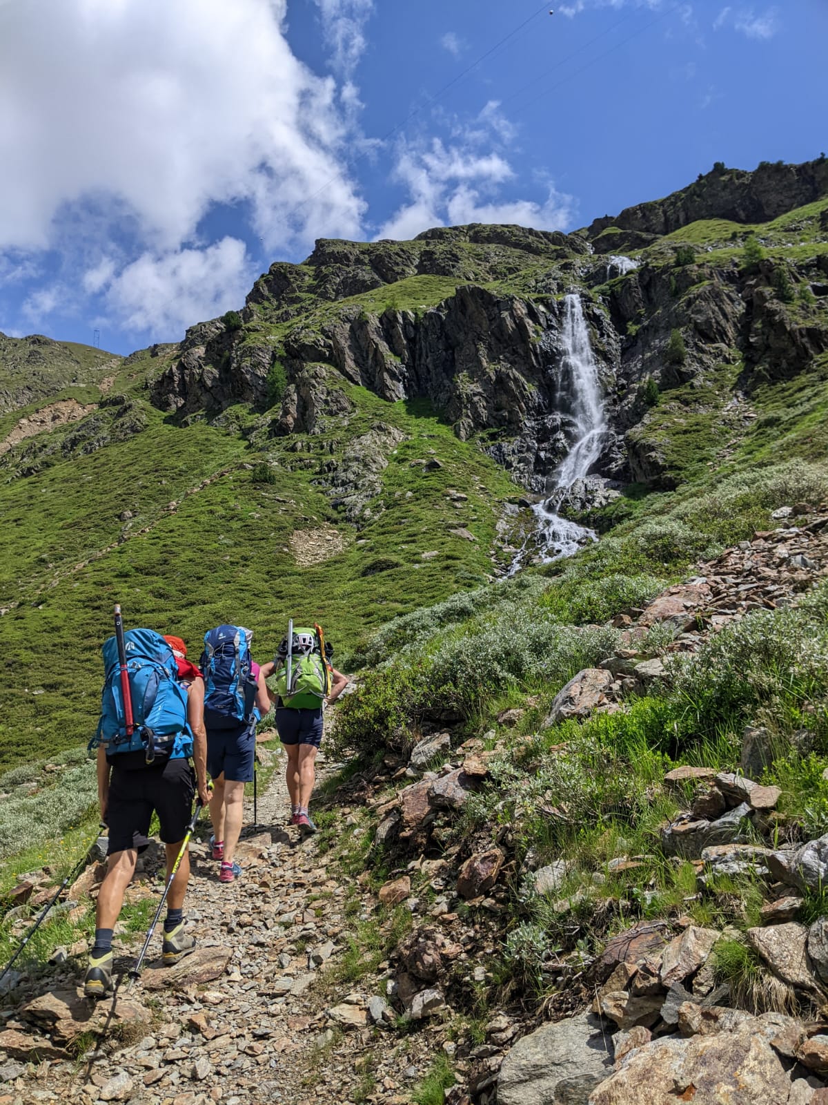 Am Freitag, 4. Juli 2025, fuhren wir mit Bus und Bahn zum Glieshof im Matschertal. Von dort ging es gemütlich einen Forstweg entlang, durch einen Lärchenwald, immer neben dem Saldurbach und schließlich in Serpentinen direkt hinauf zur Oberetteshütte. Dort ließen wir den Abend gemütlich ausklingen und besprachen die Tour für den nächsten Tag.